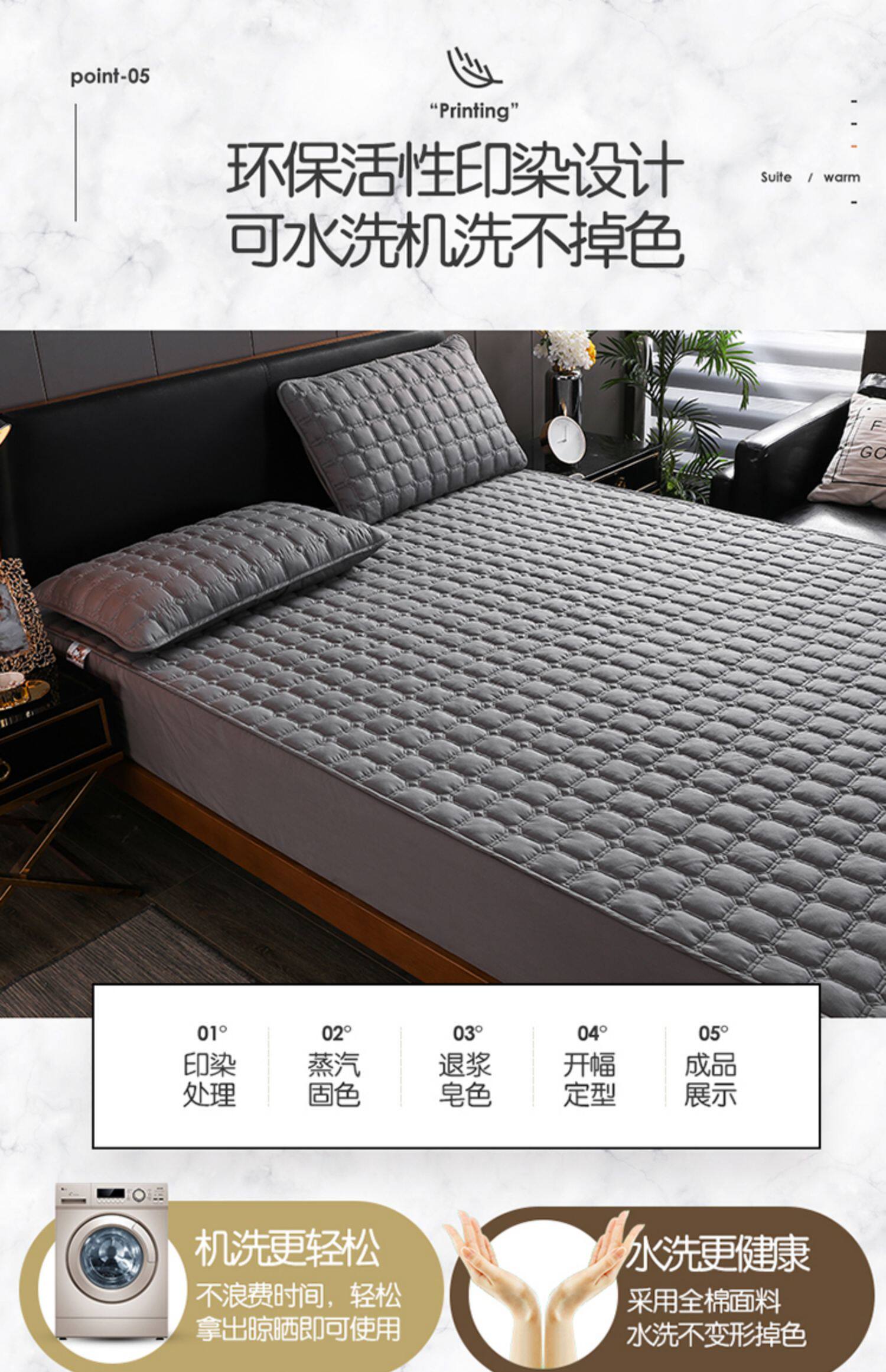 Антибактериальная хлопковая стеганая простыня, нескользящий защитный чехол, покрывало, 100% хлопок, увеличенная толщина, 1.8м