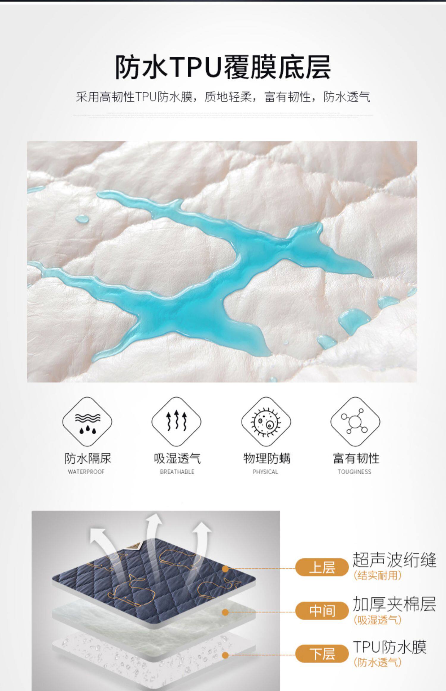 南极人 Водонепроницаемая стеганая простыня, покрывало, дышащий пылезащитный матрас, защитный чехол, увеличенная толщина
