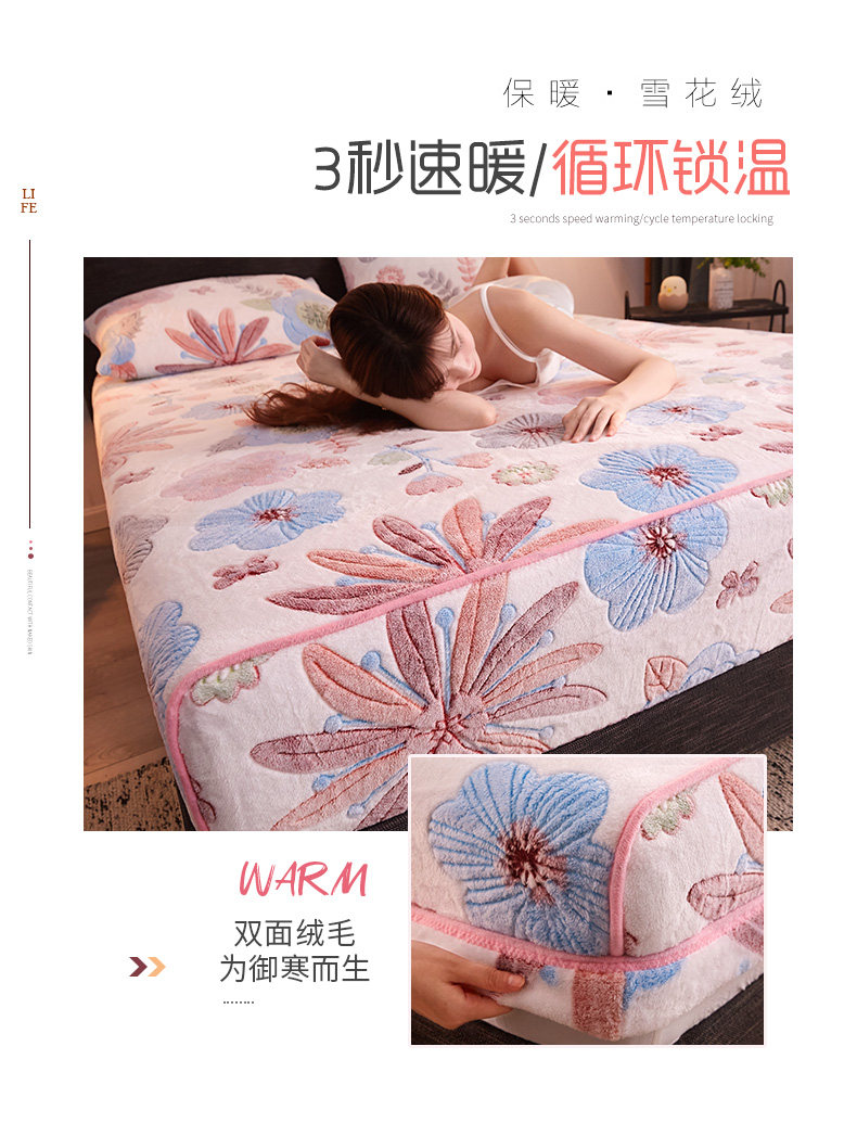 - Простыня на флисовой подкладке, увеличенная толщина, со снежинками, 180x, 220см