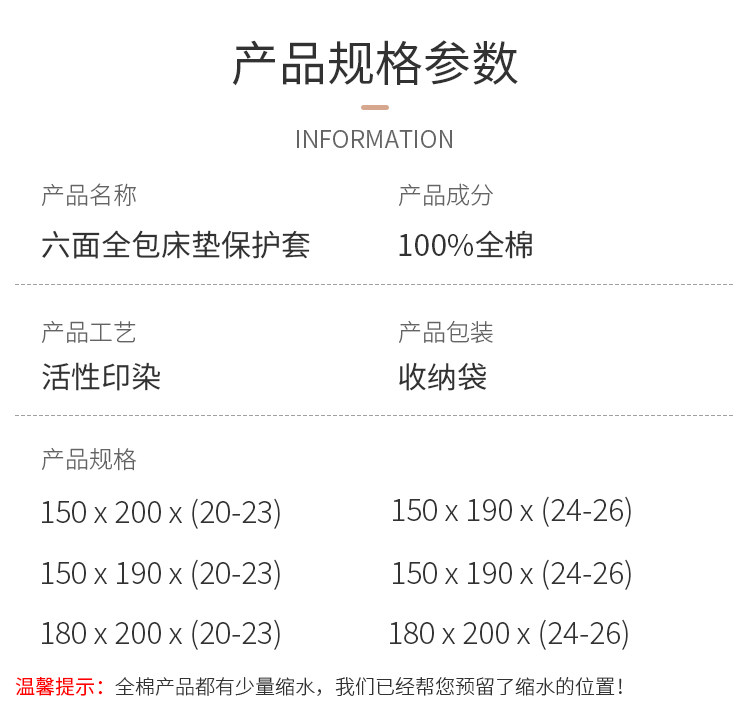| Размеры простыней/кроватей: | 150*200*(20-23CM), 150*190*(20-23CM), 150*190*(24-26CM), 150*200*(24-26CM), 180*200*( 20-23CM ), 180*200*(24-26CM) |