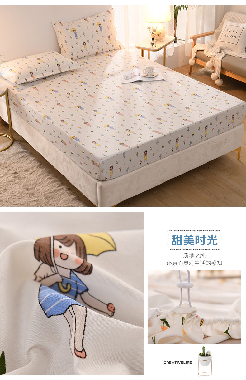 Хлопковое покрывало, летний хлопковый комплект, защитный нескользящий матрас, мультяшная простыня, 3 предмета, фиксаторы в комплекте