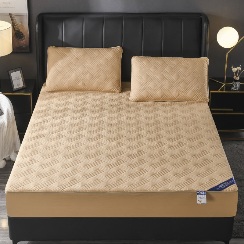 - Желтовато-коричневая простыня, стеганая наволочка