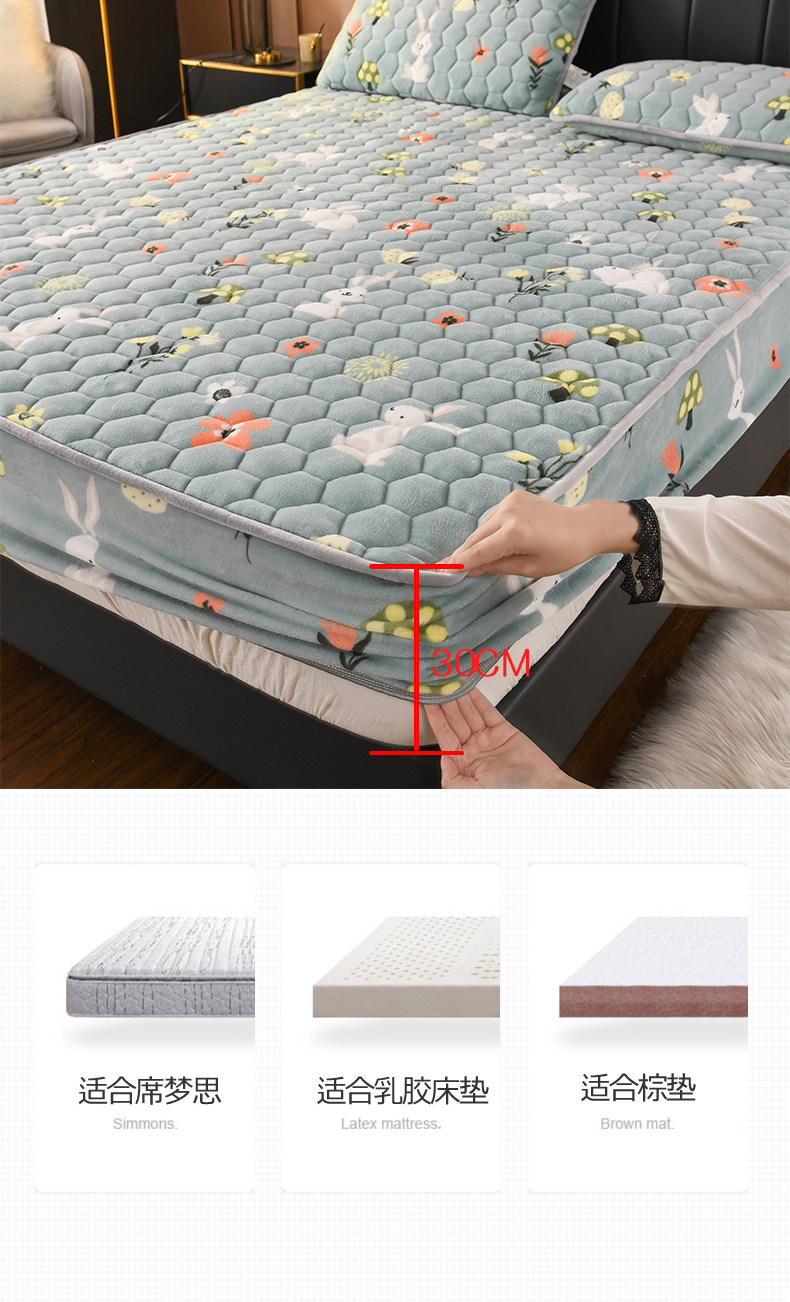 Флисовая простыня на флисовой подкладке, стеганое покрывало, матрас, защитный чехол, нескользящая пылезащитная крышка, увеличенная толщина