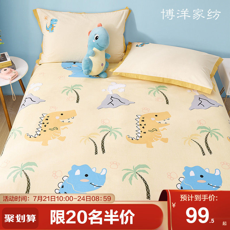 博洋 Детская простыня, мультяшный динозавр для мальчиков, нескользящая защитная сумка, летние накладки, хлопковое покрывало, фиксаторы в комплекте
