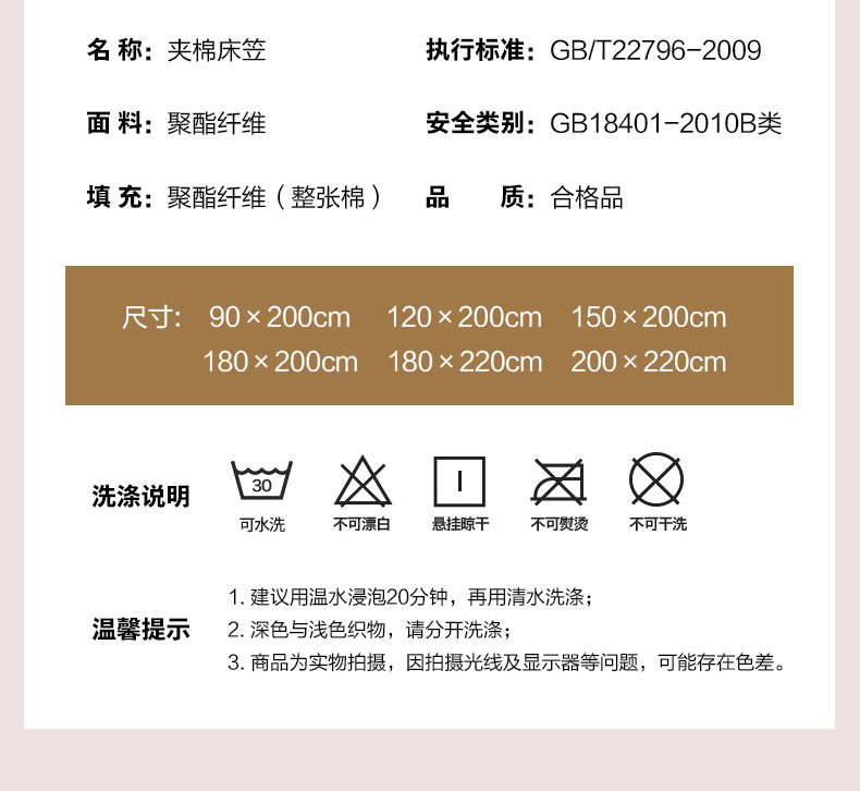 | [床单/床笠尺寸]: | [90x200cm【适合5-28cm内床垫】母婴标准 四季通用], [120x200cm【适合5-28cm内床垫】三层夹棉 平整服贴], [150x200cm【适合5-28cm内床垫】抗菌防螨 防尘隔脏], [180x200cm【适合5-28cm内床垫】防滑固定 吸湿透气], [180x220cm【适合5-28cm内床垫】360°全方位保护床垫], [200x220cm【适合5-28cm内床垫】可机洗 舒适不变形], Комплект, наволочка, 3 предмета, 90x, Комплект, наволочка, 3 предмета, 120x, Комплект, наволочка, 3 предмета, 150x, Комплект, наволочка, 3 предмета, 180x, Комплект, простыня, наволочка, 3 предмета, 180x, 220см, Комплект, простыня, наволочка, 3 предмета, 200x, 220см |