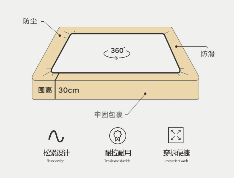 - [150x200cm【适合5-28cm内床垫】抗菌防螨 防尘隔脏]