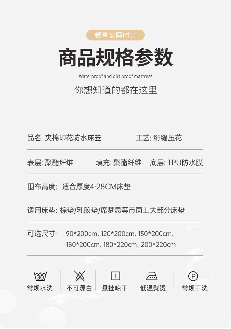 - [200x220cm【防水隔尿 舒适省心】【适合4-28cm床垫】]