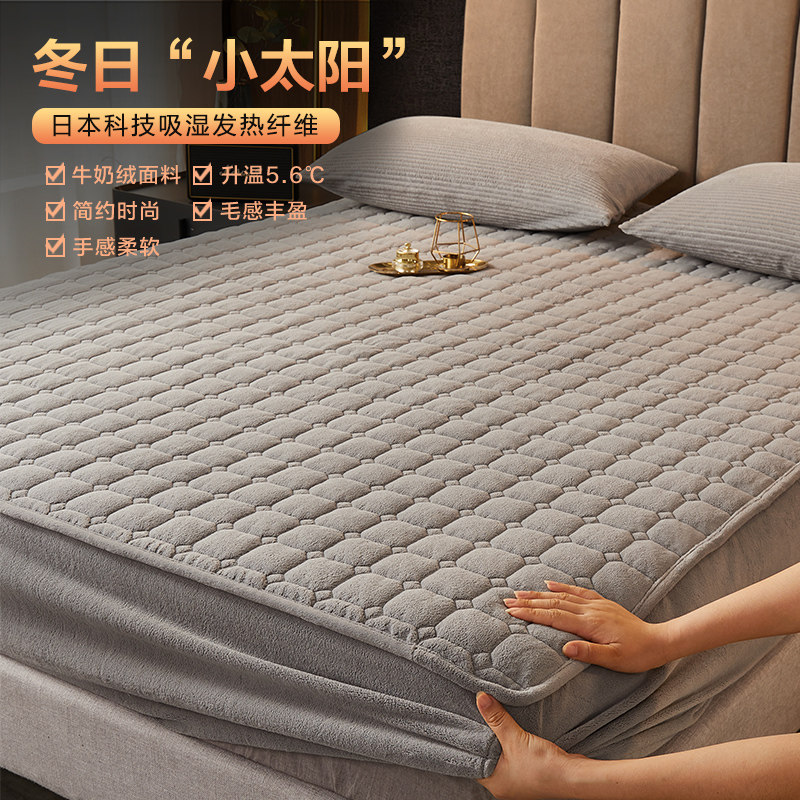 Коралловая флисовая зимняя нескользящая простыня на флисовой подкладке, стеганый матрас, фиксаторы в комплекте, увеличенная толщина