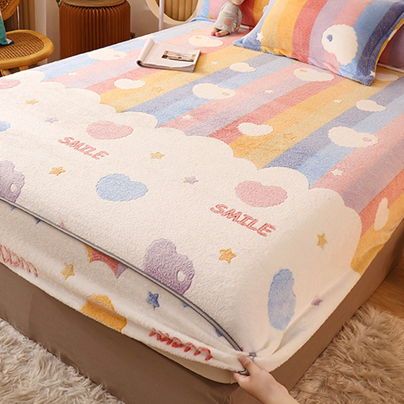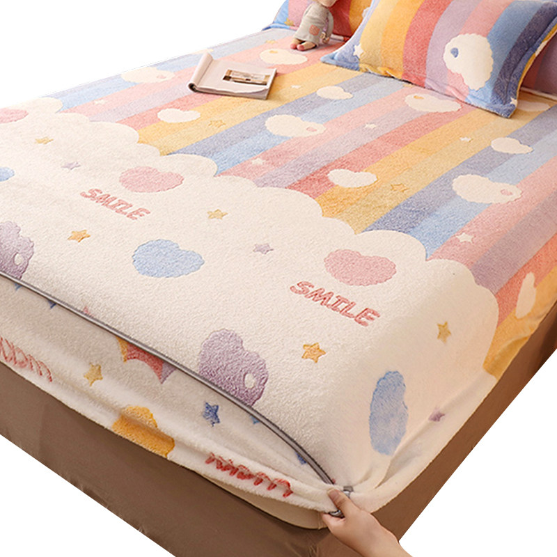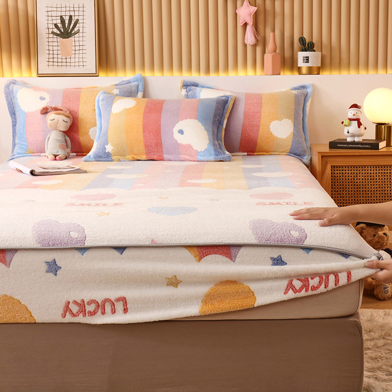 Коралловая простыня на флисовой подкладке, покрывало, фланелевый матрас, нескользящая пылезащитная крышка, комплект, увеличенная толщина, фиксаторы в комплекте, 3 предмета
