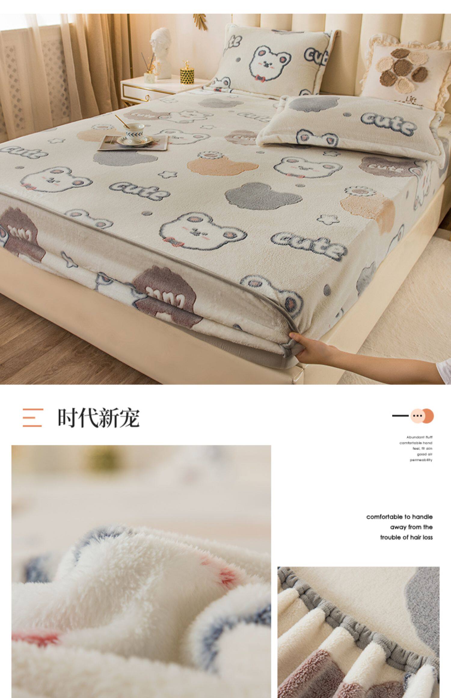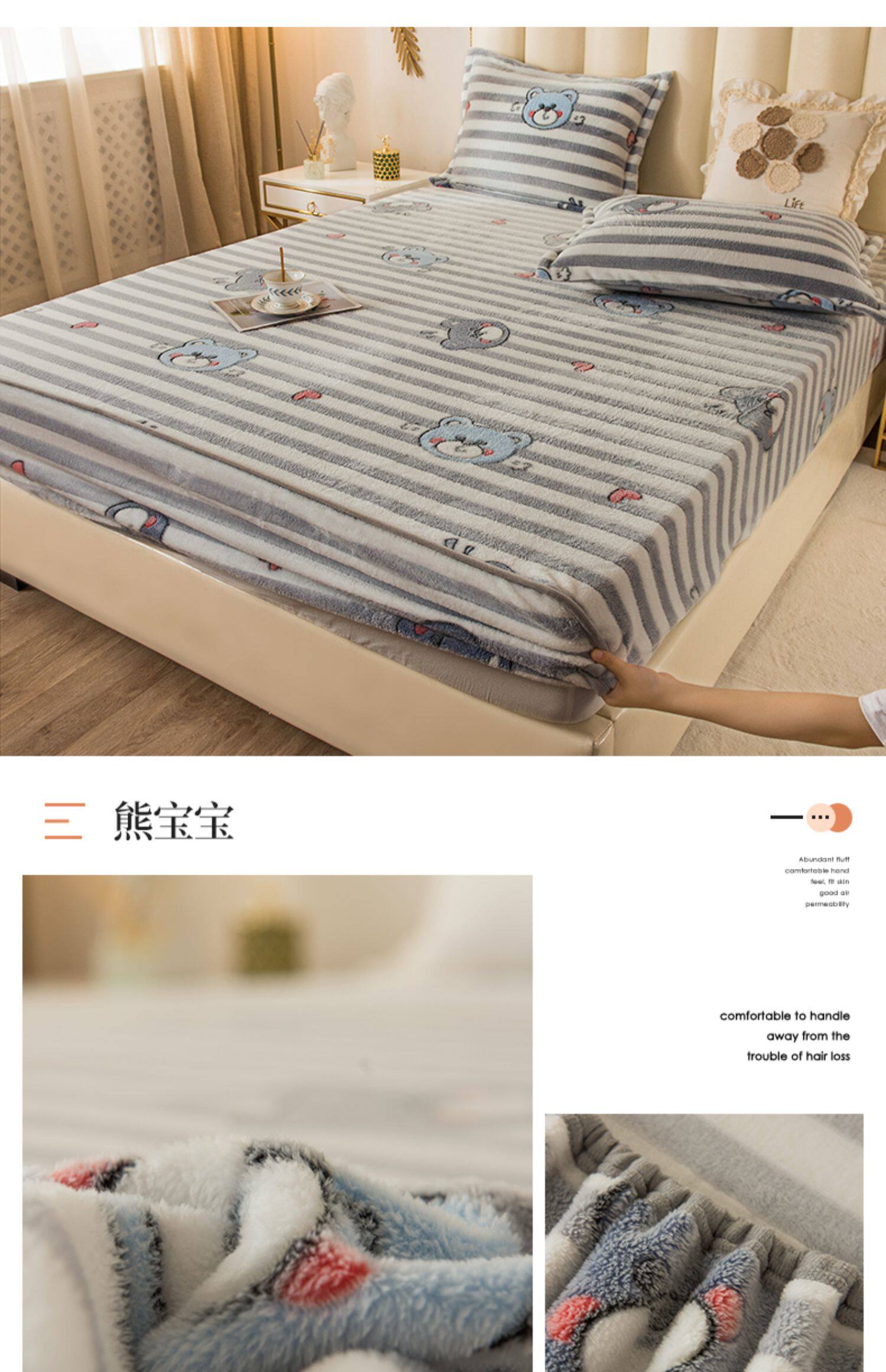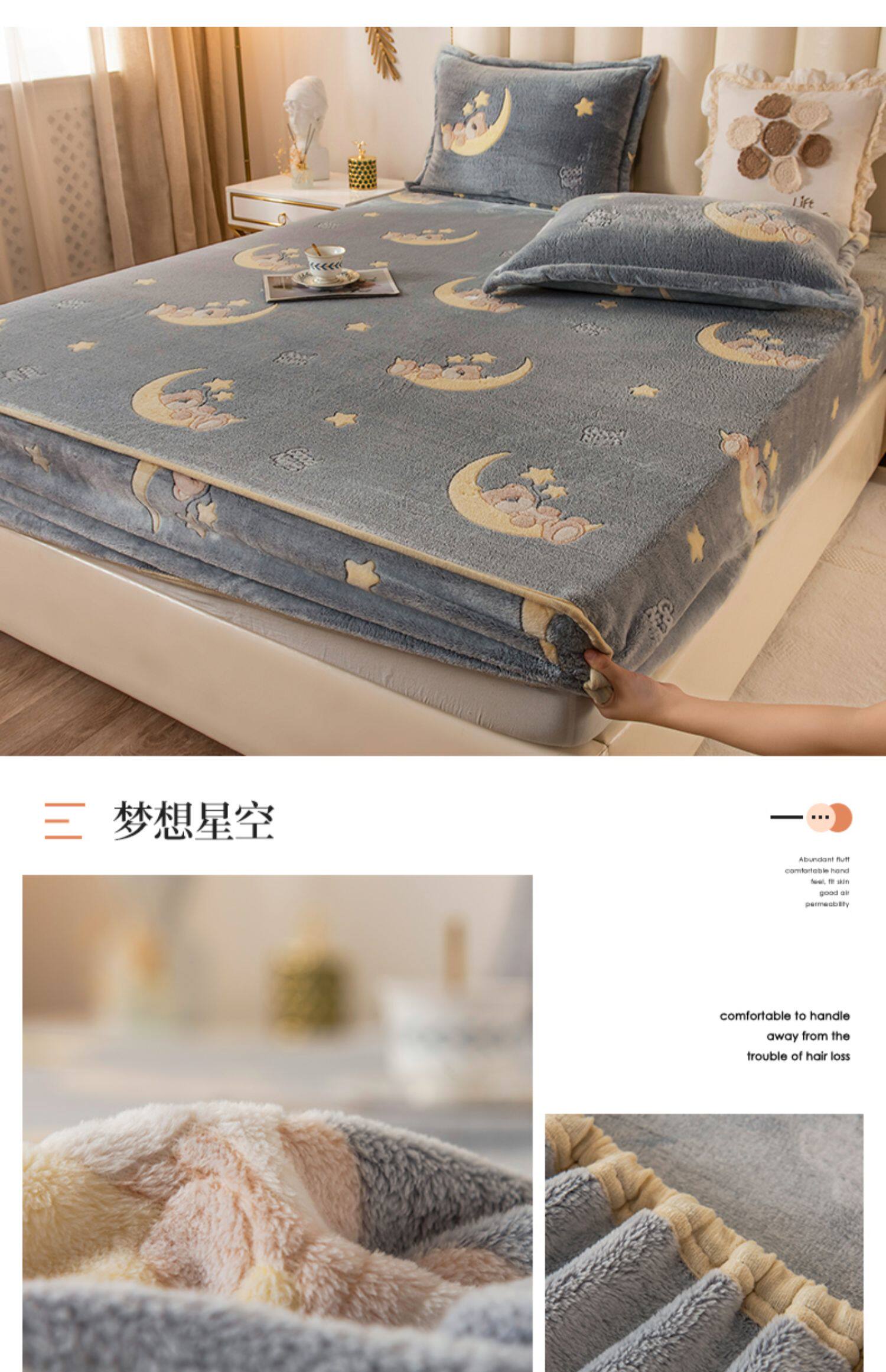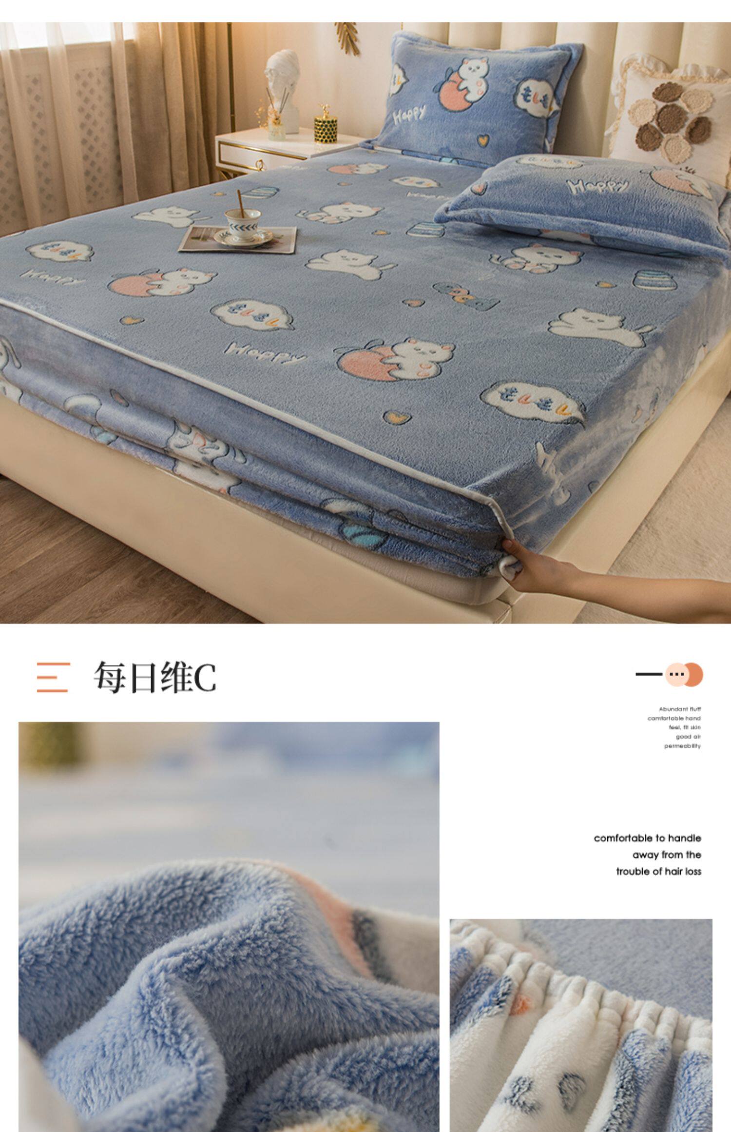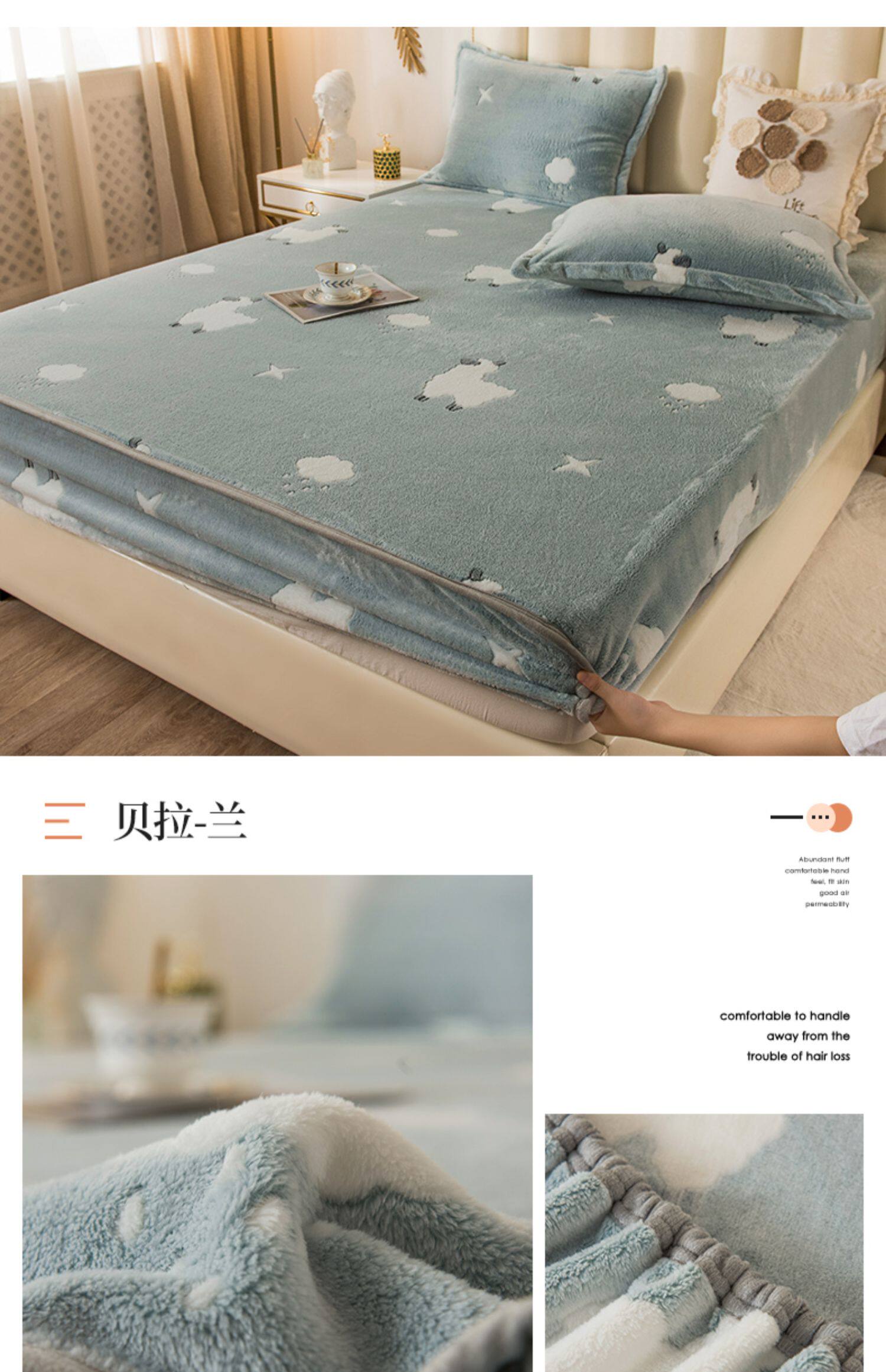 Зимняя коралловая простыня на флисовой подкладке, фланелевое нескользящое покрывало, матрас, пылезащитная крышка, увеличенная толщина, фиксаторы в комплекте