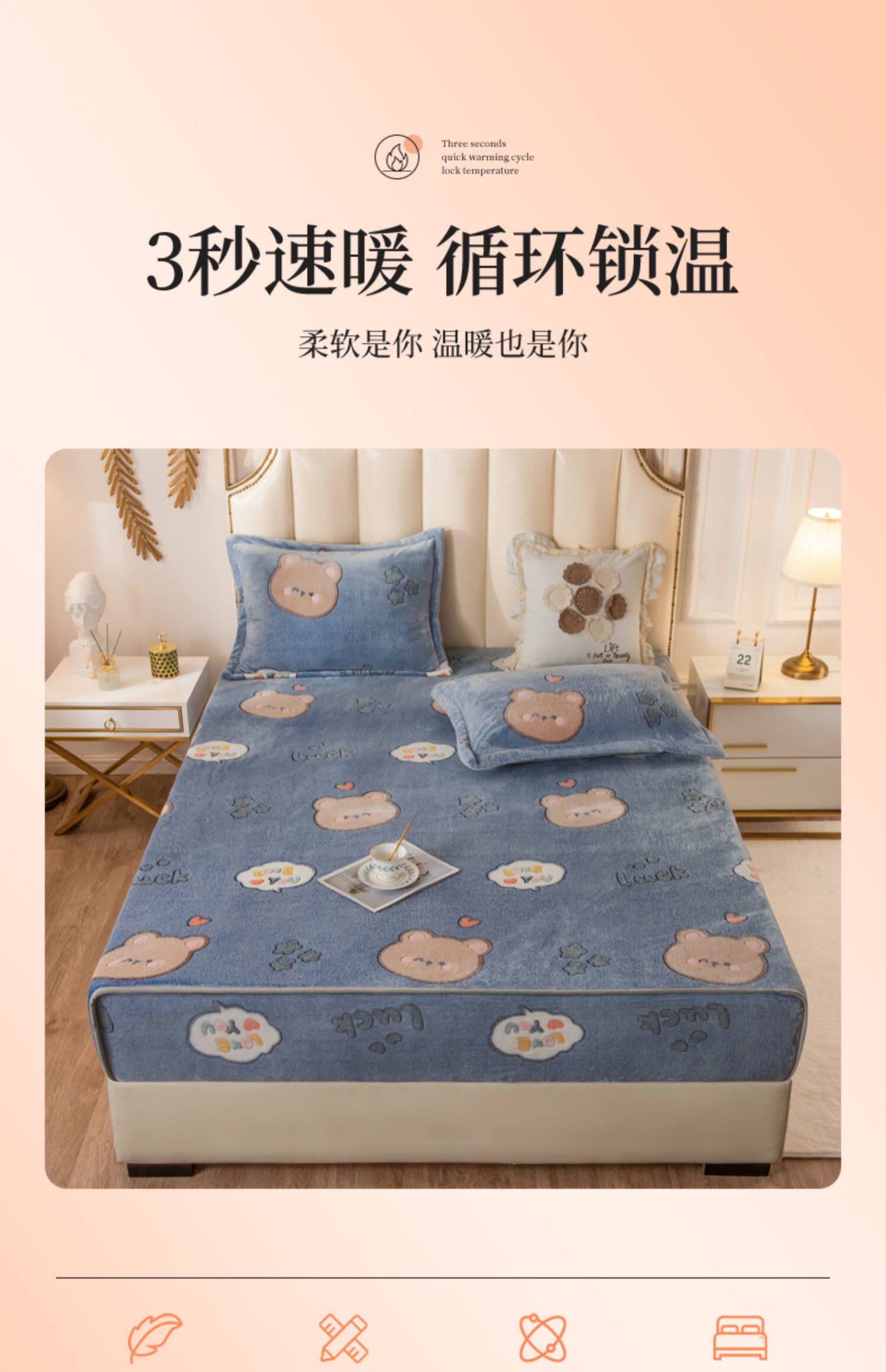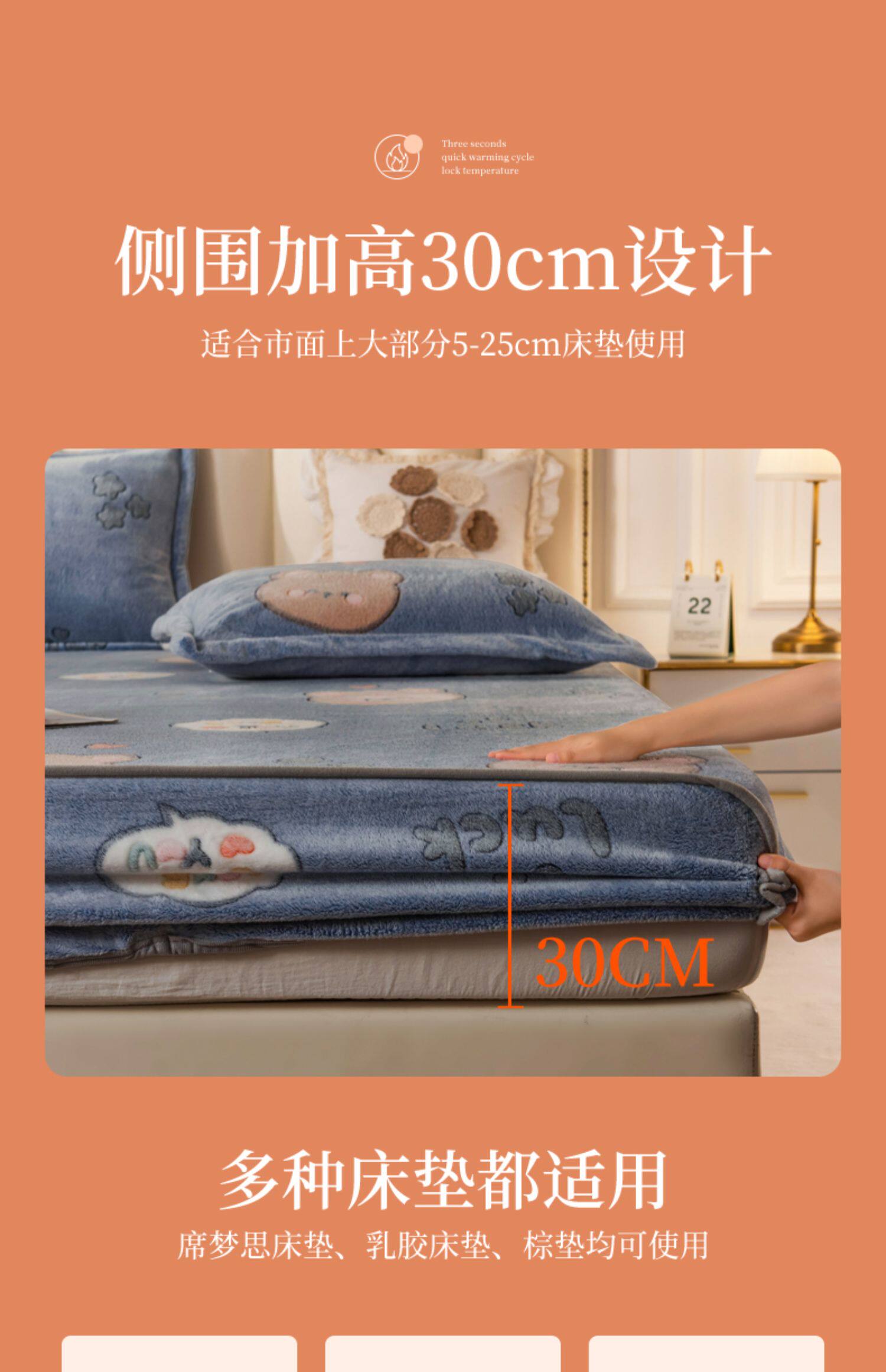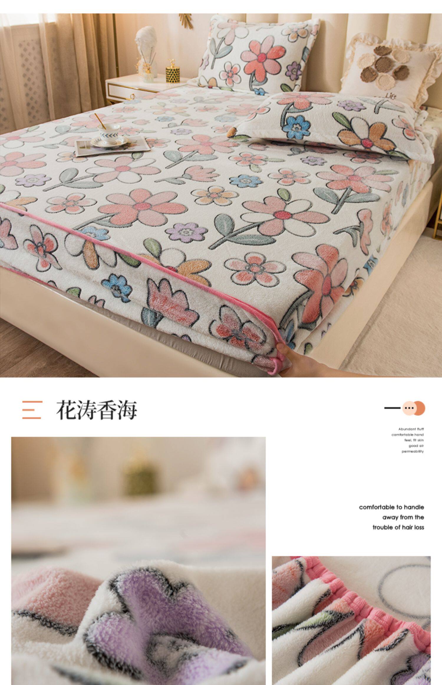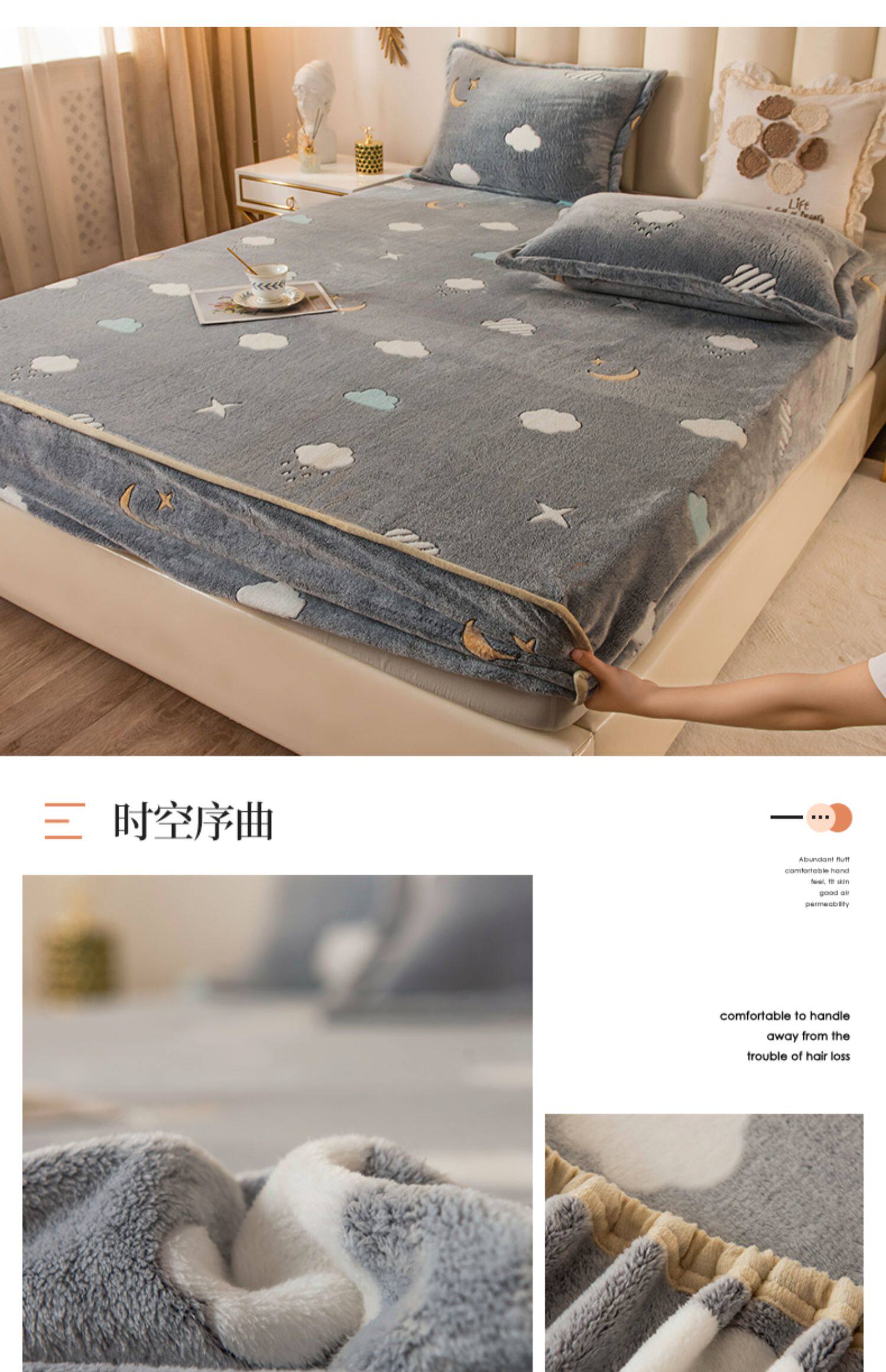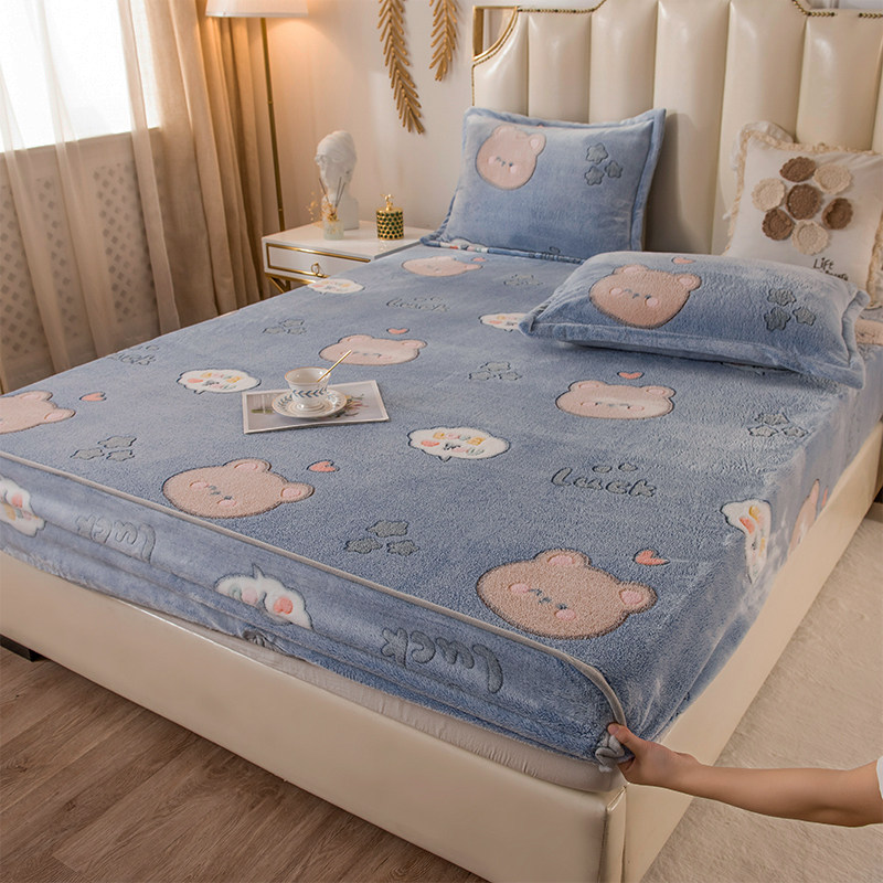 Зимняя коралловая простыня на флисовой подкладке, фланелевое нескользящое покрывало, матрас, пылезащитная крышка, увеличенная толщина, фиксаторы в комплекте