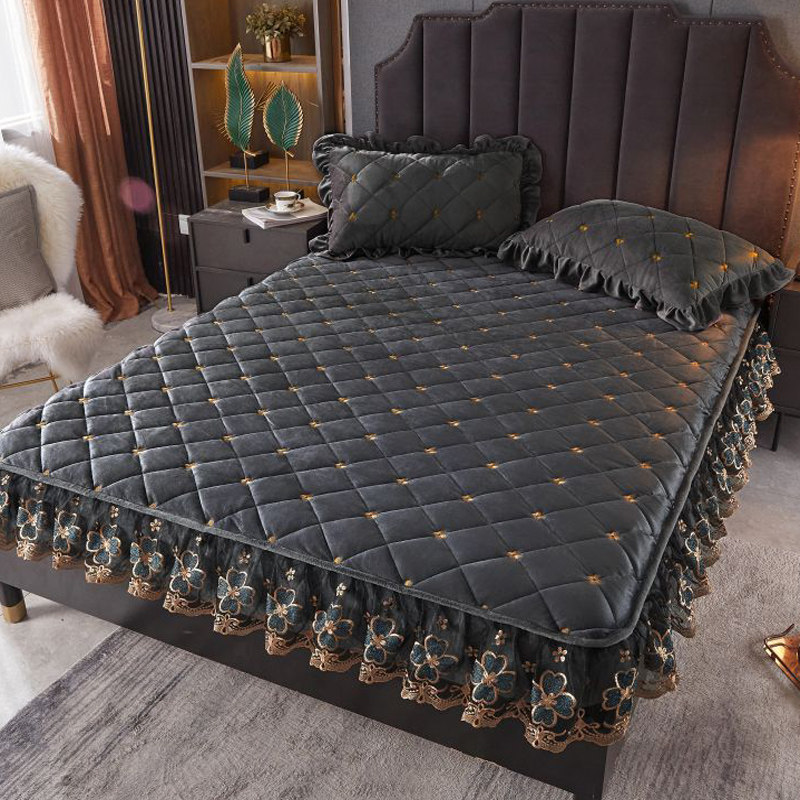 Зимняя стеганая простыня на флисовой подкладке, коралловое нескользящое покрывало, комплект, 3 предмета