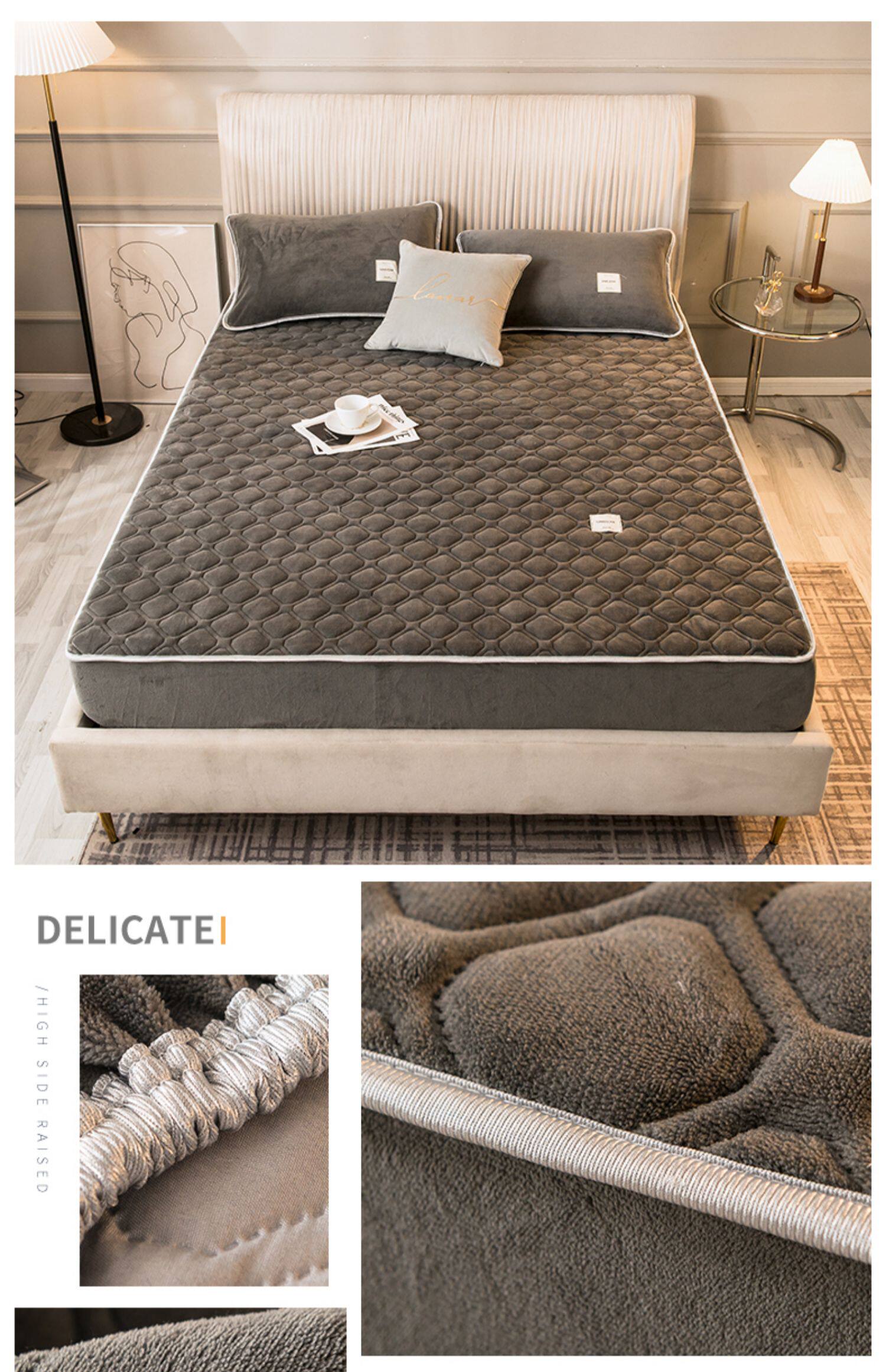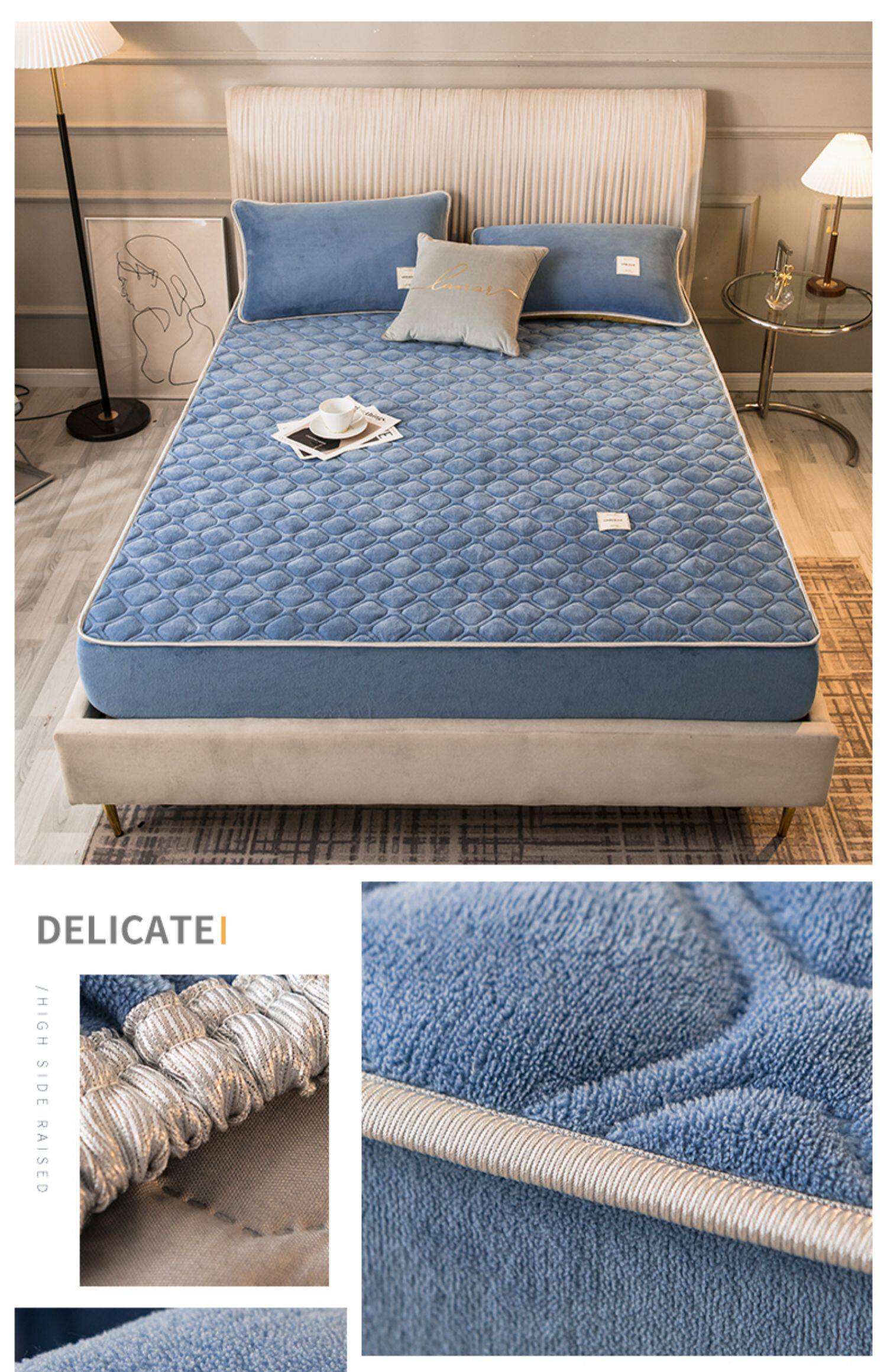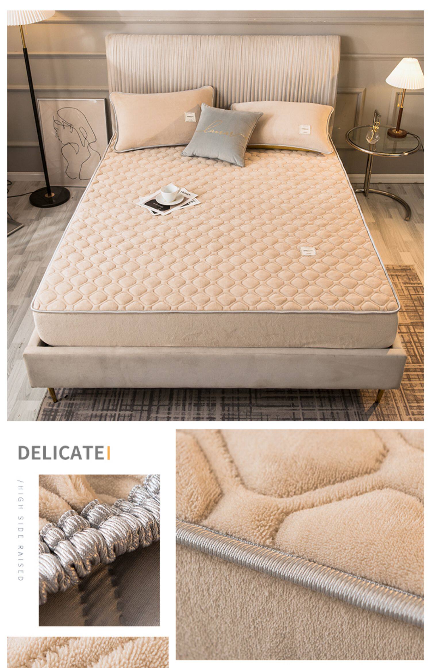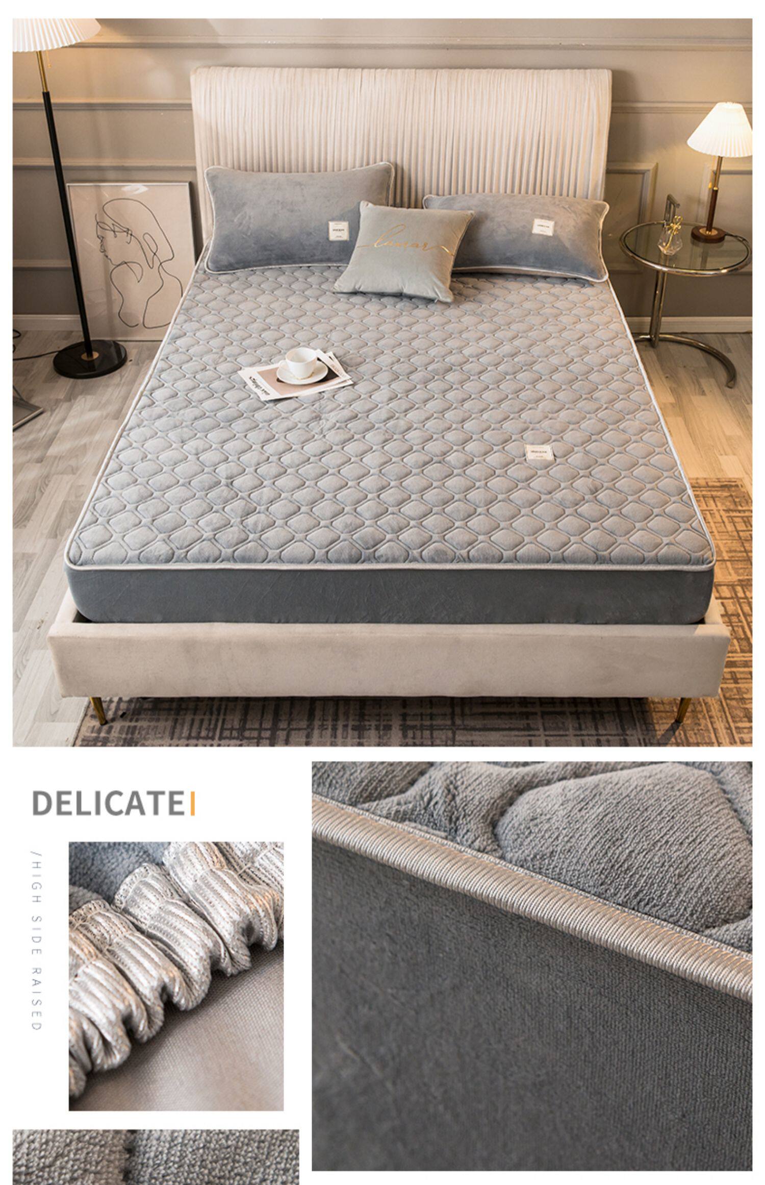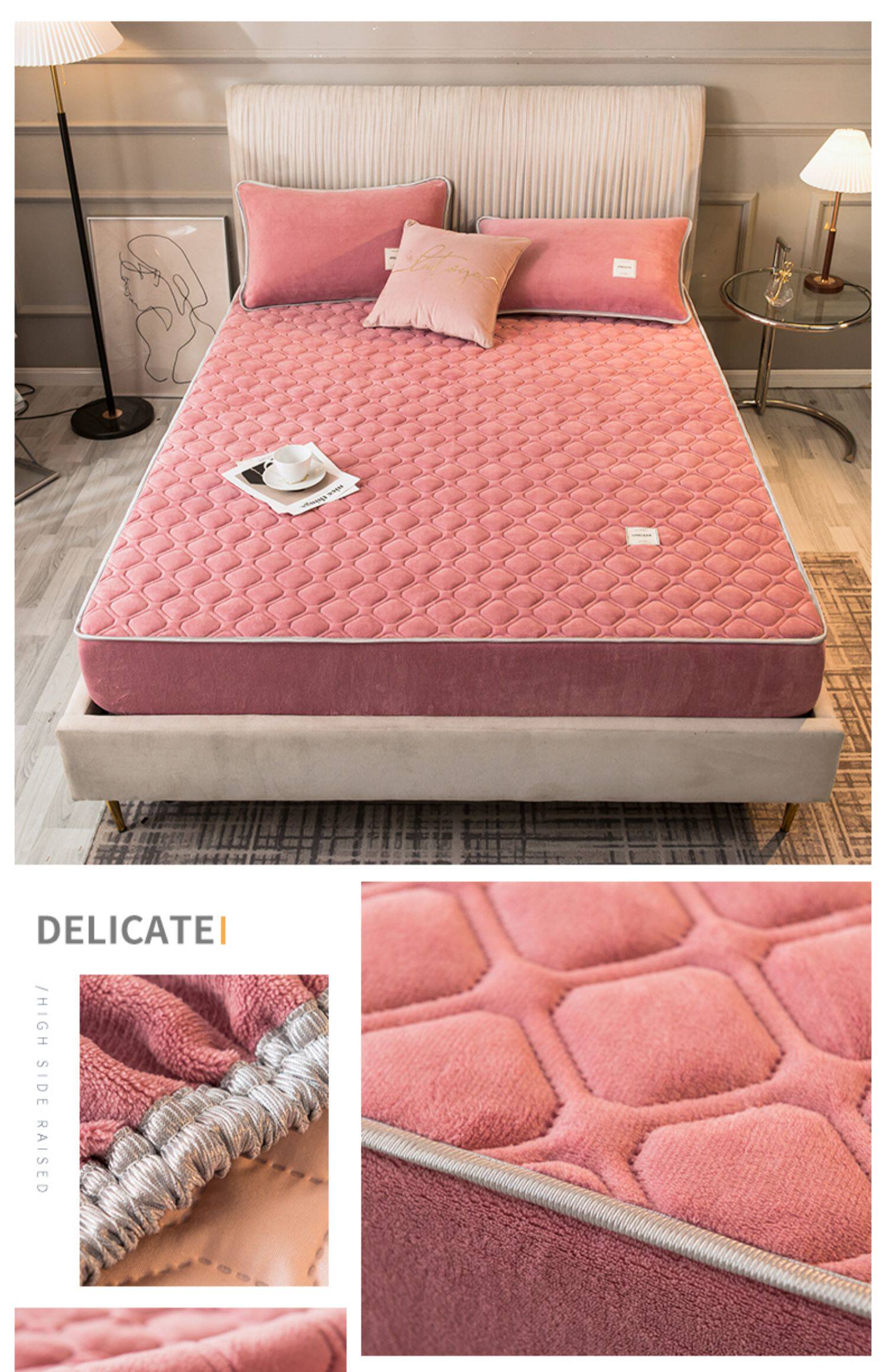 Коралловая простыня на флисовой подкладке, стеганое покрывало, нескользящий матрас, пылезащитная крышка, защитный чехол, увеличенная толщина, фиксаторы в комплекте