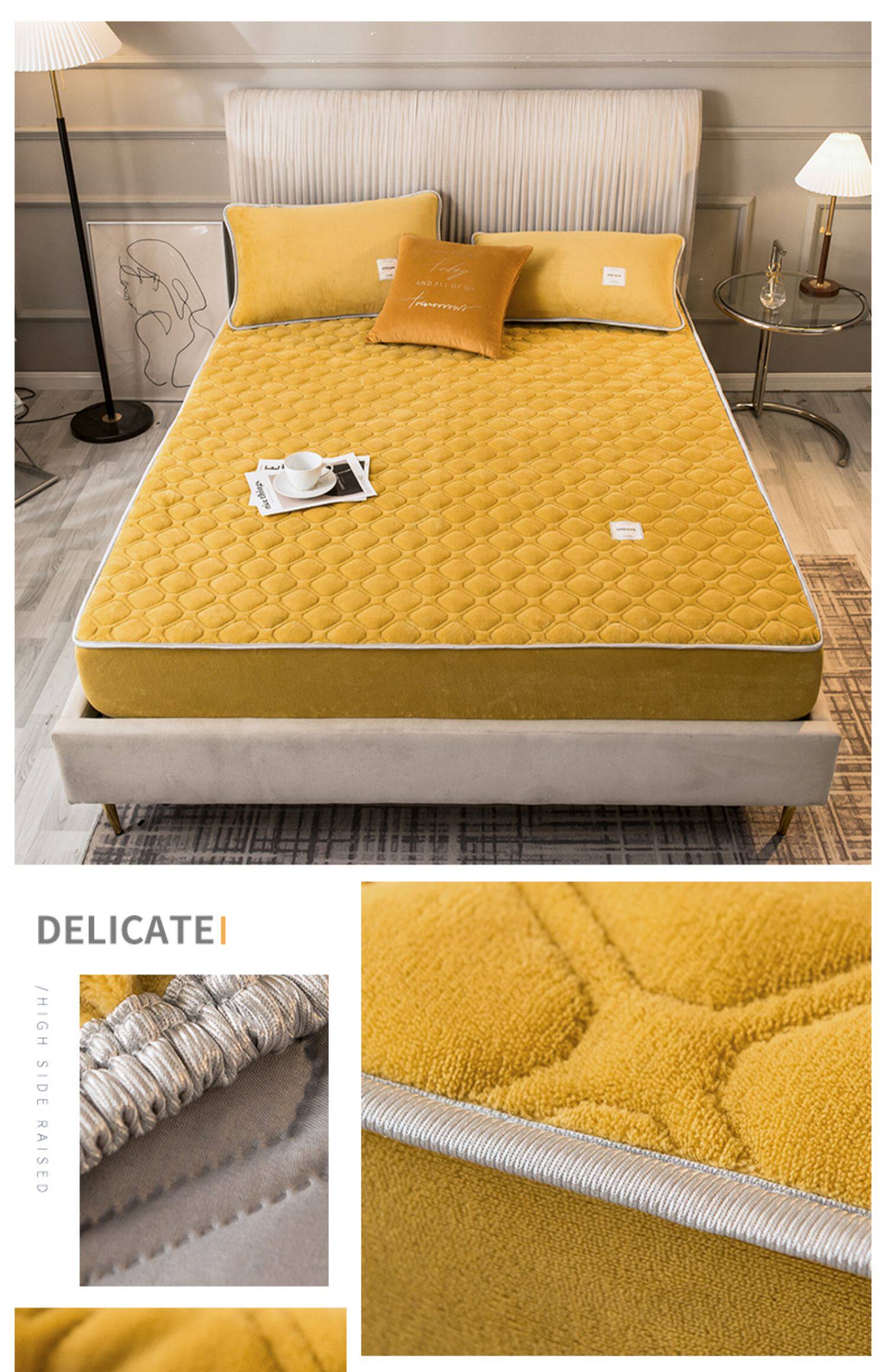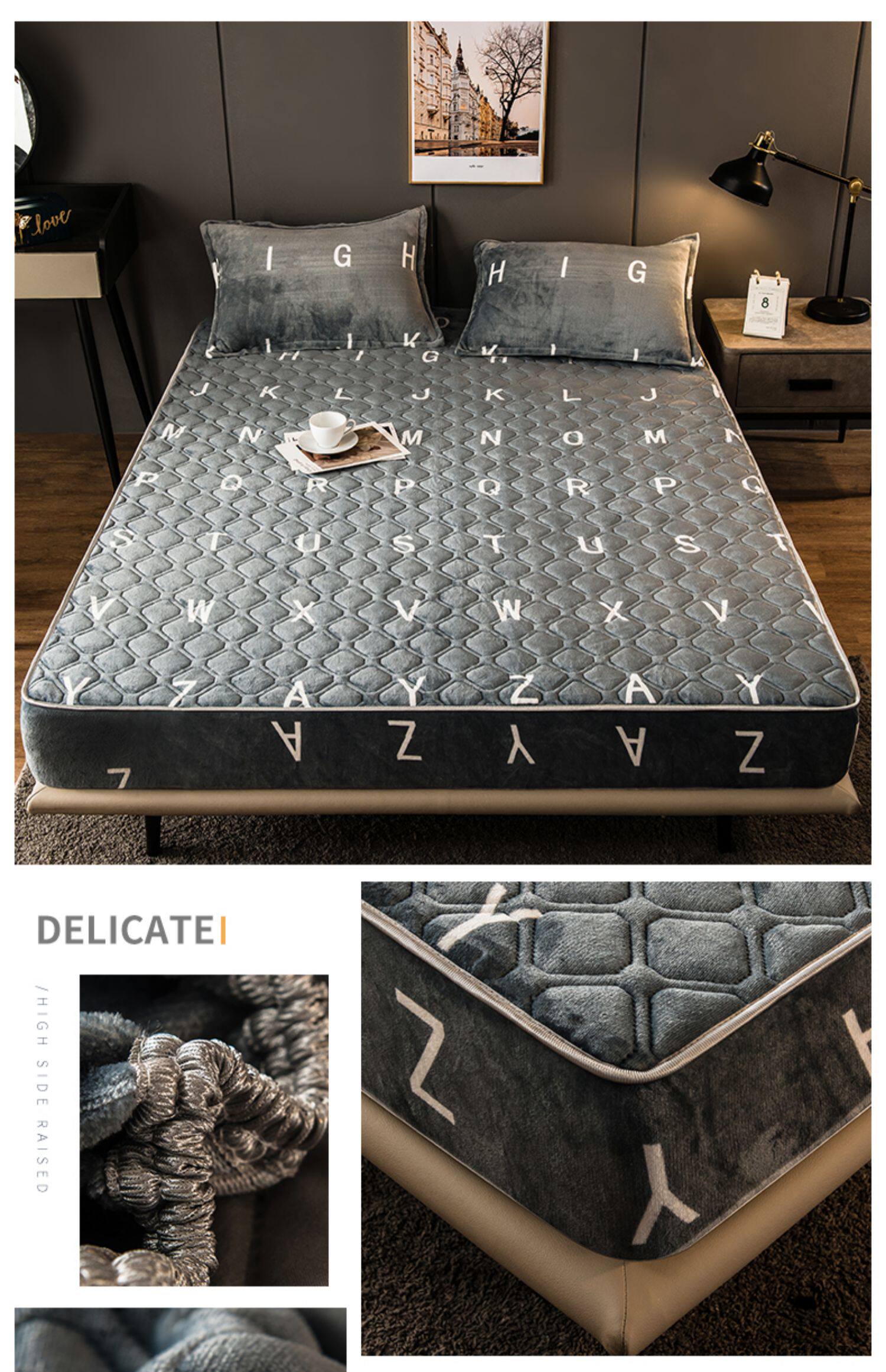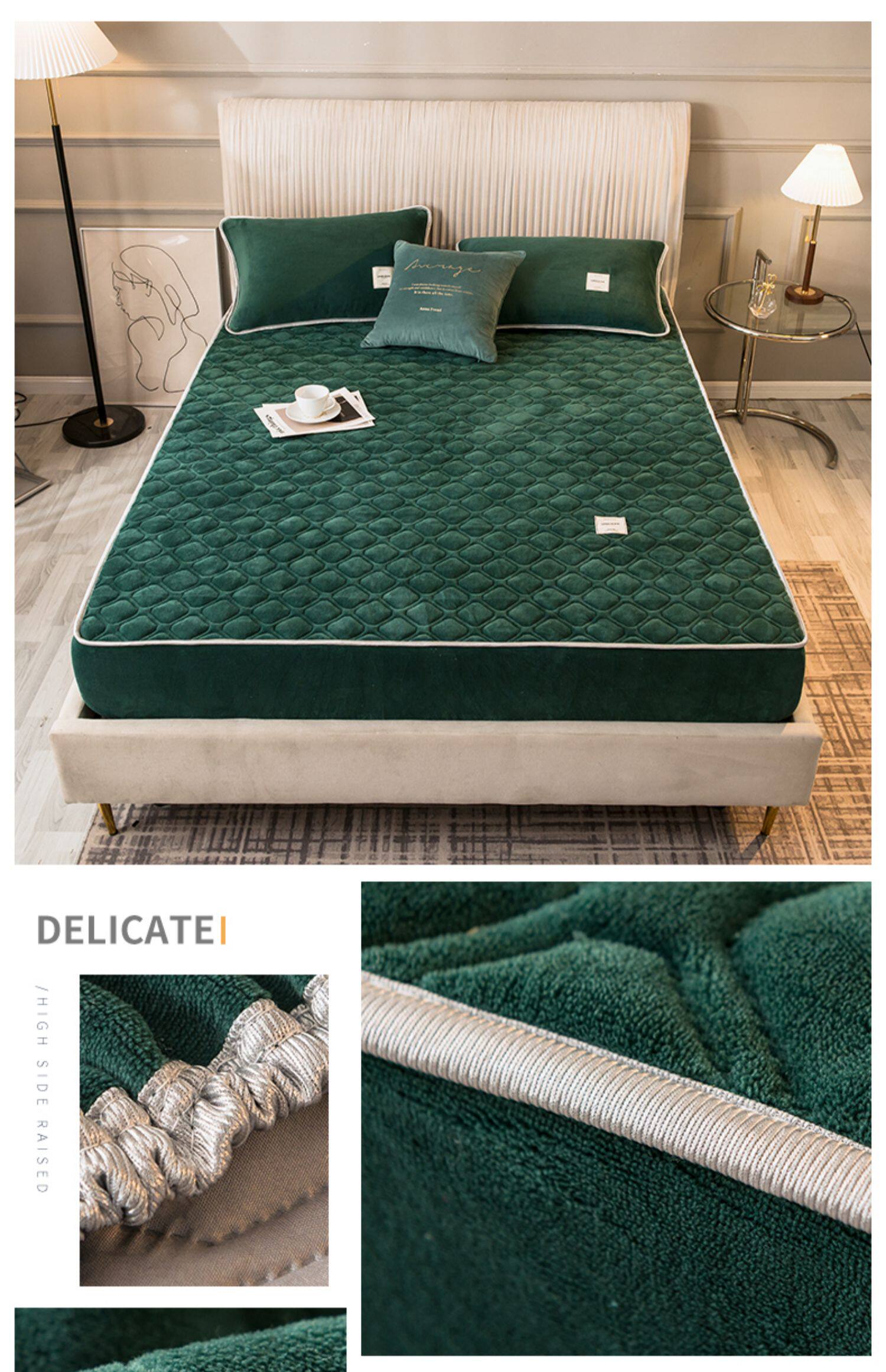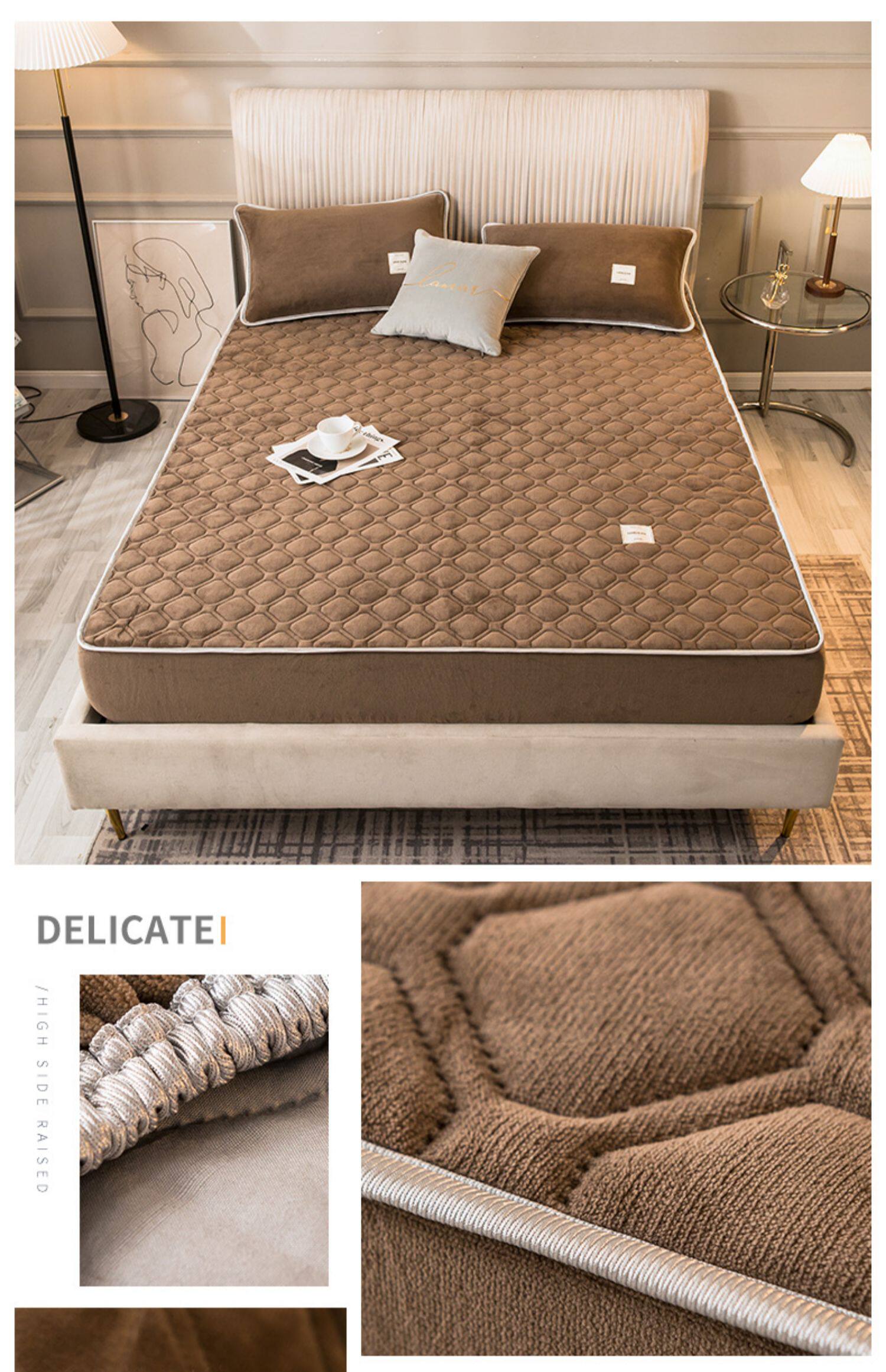 Коралловая простыня на флисовой подкладке, стеганое покрывало, нескользящий матрас, пылезащитная крышка, защитный чехол, увеличенная толщина, фиксаторы в комплекте