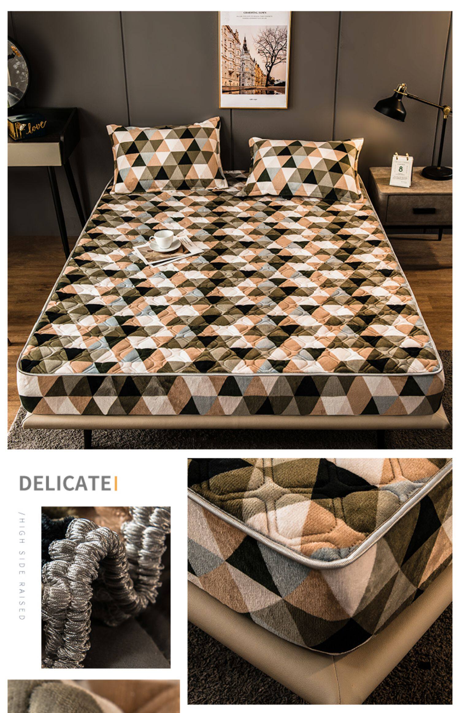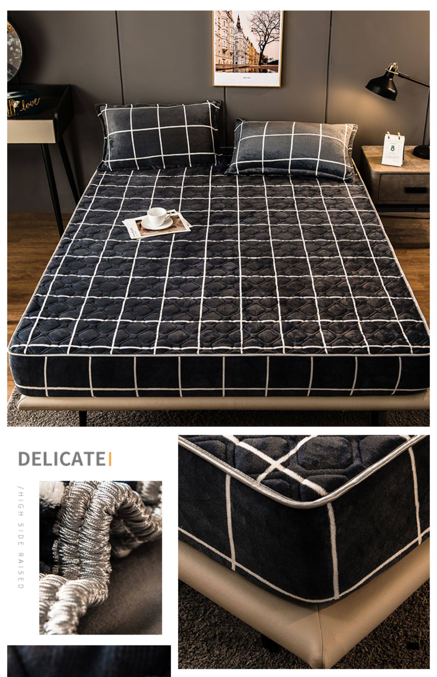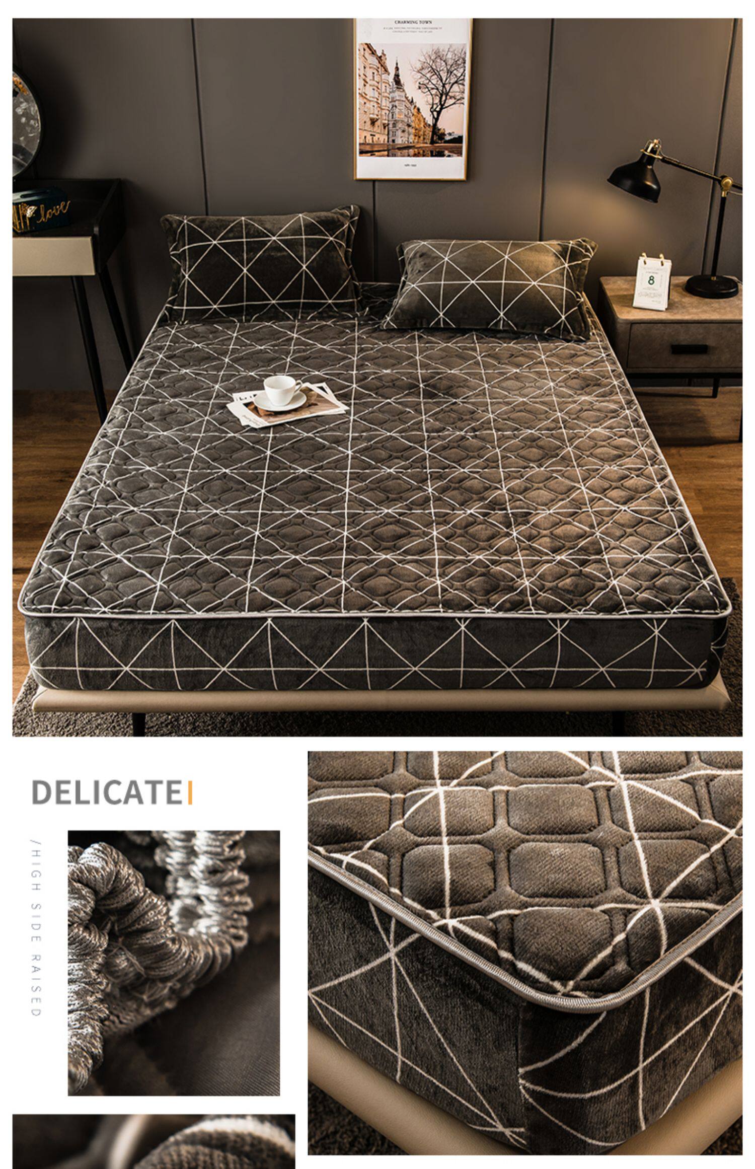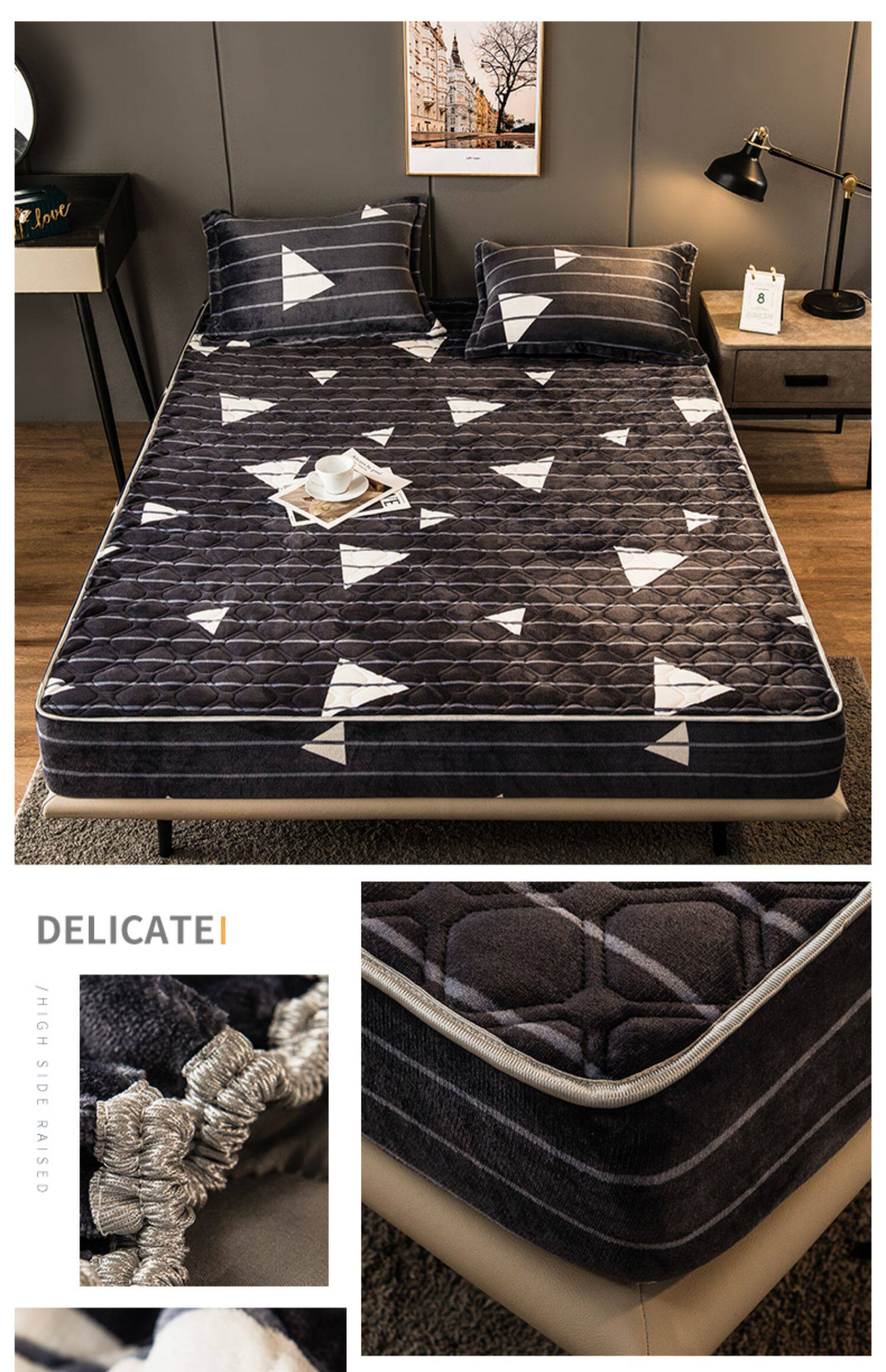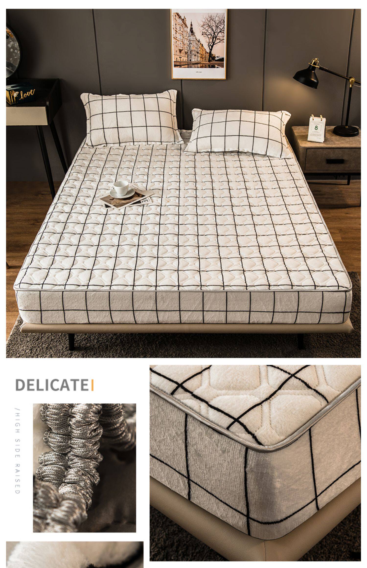 Коралловая простыня на флисовой подкладке, стеганое покрывало, нескользящий матрас, пылезащитная крышка, защитный чехол, увеличенная толщина, фиксаторы в комплекте
