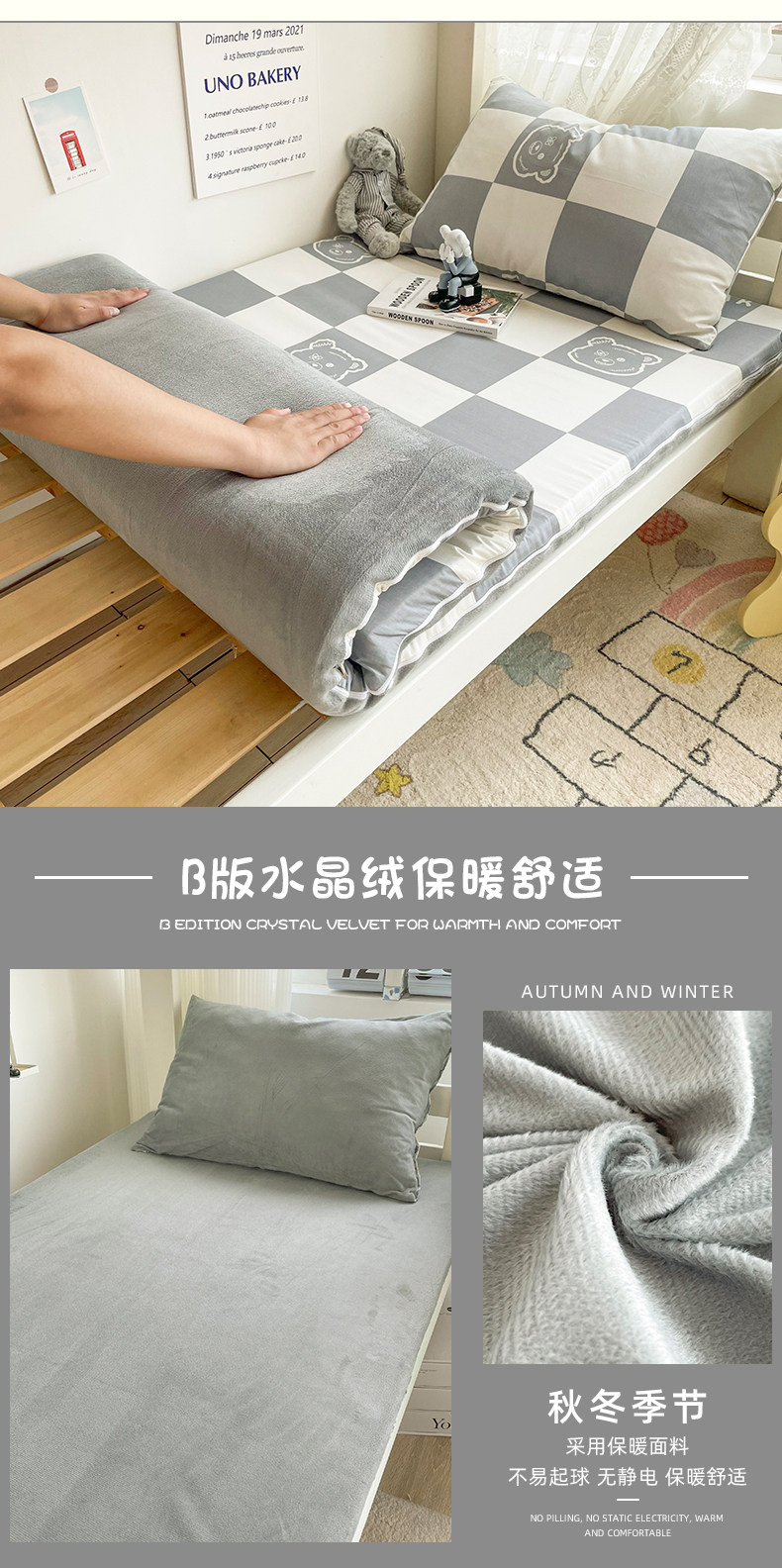 - 1,8x2m однокласная крышка + пара наволочек 【Применимо к матрасу 1-10 см】