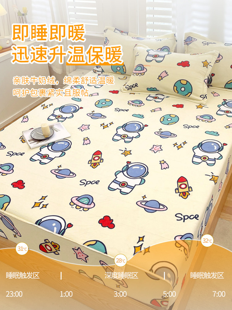 Детская мультяшная простыня, покрывало, коралловый матрас, нескользящий защитный чехол, фиксаторы в комплекте