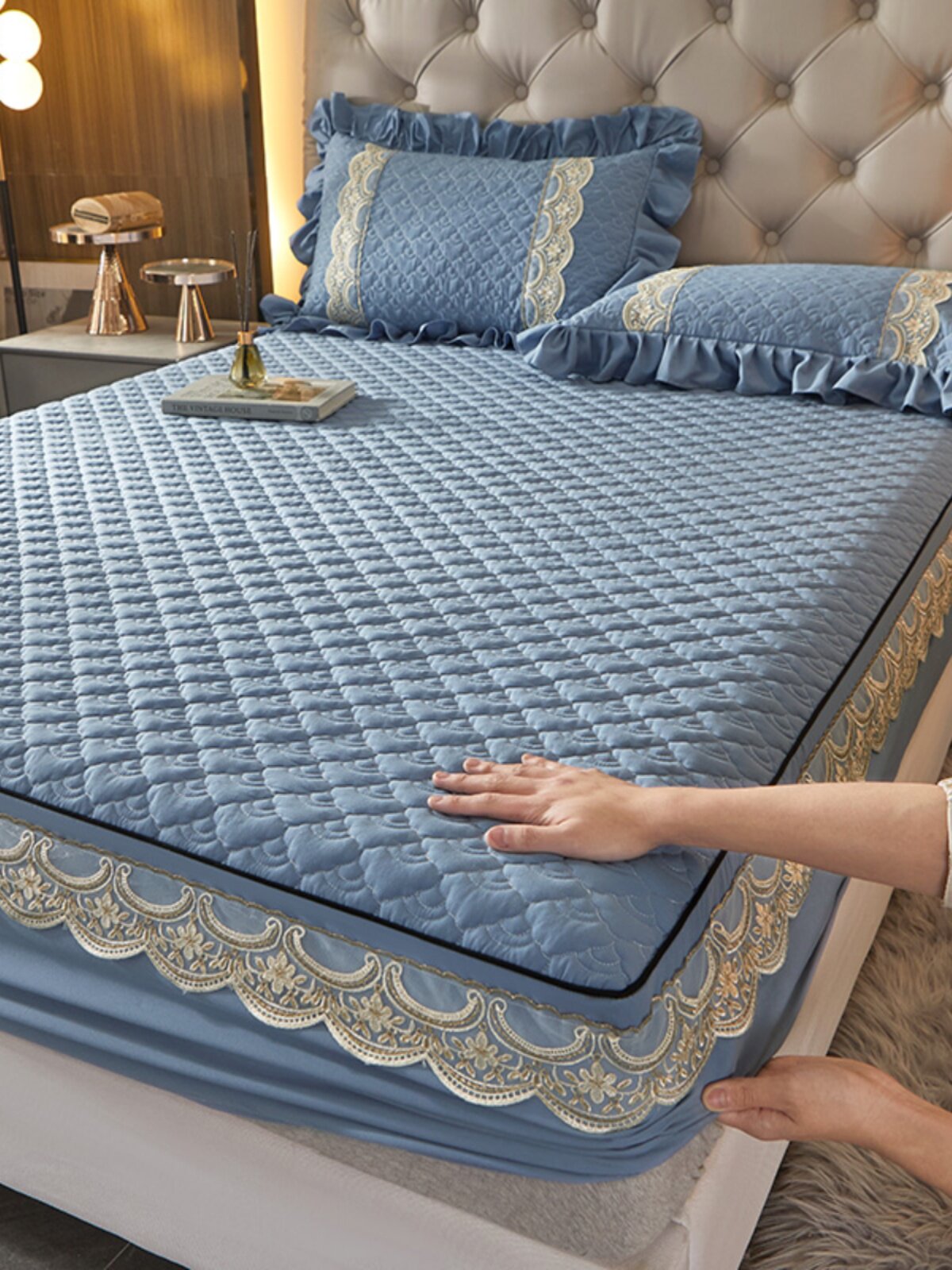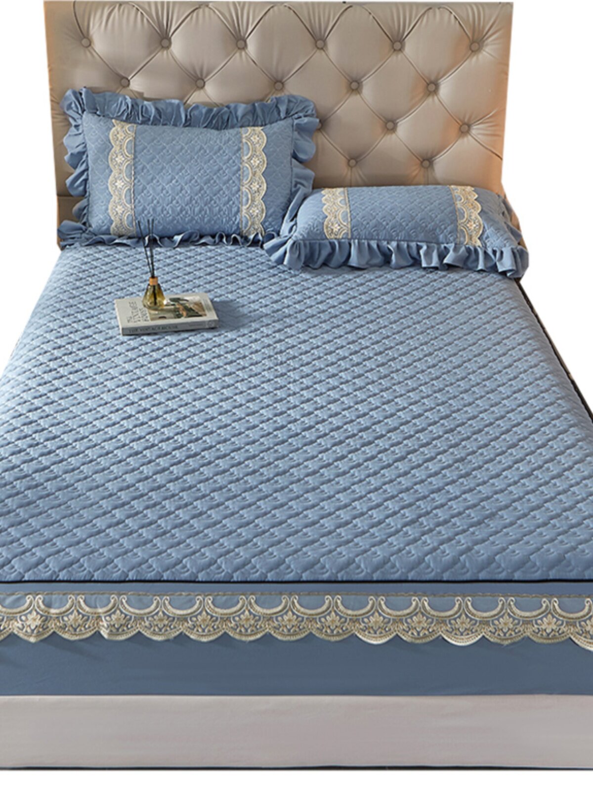 Хлопковая простыня, покрывало, комплект, пылезащитная крышка, защитный матрас, коллекция 2022, с вышивкой, 3 предмета