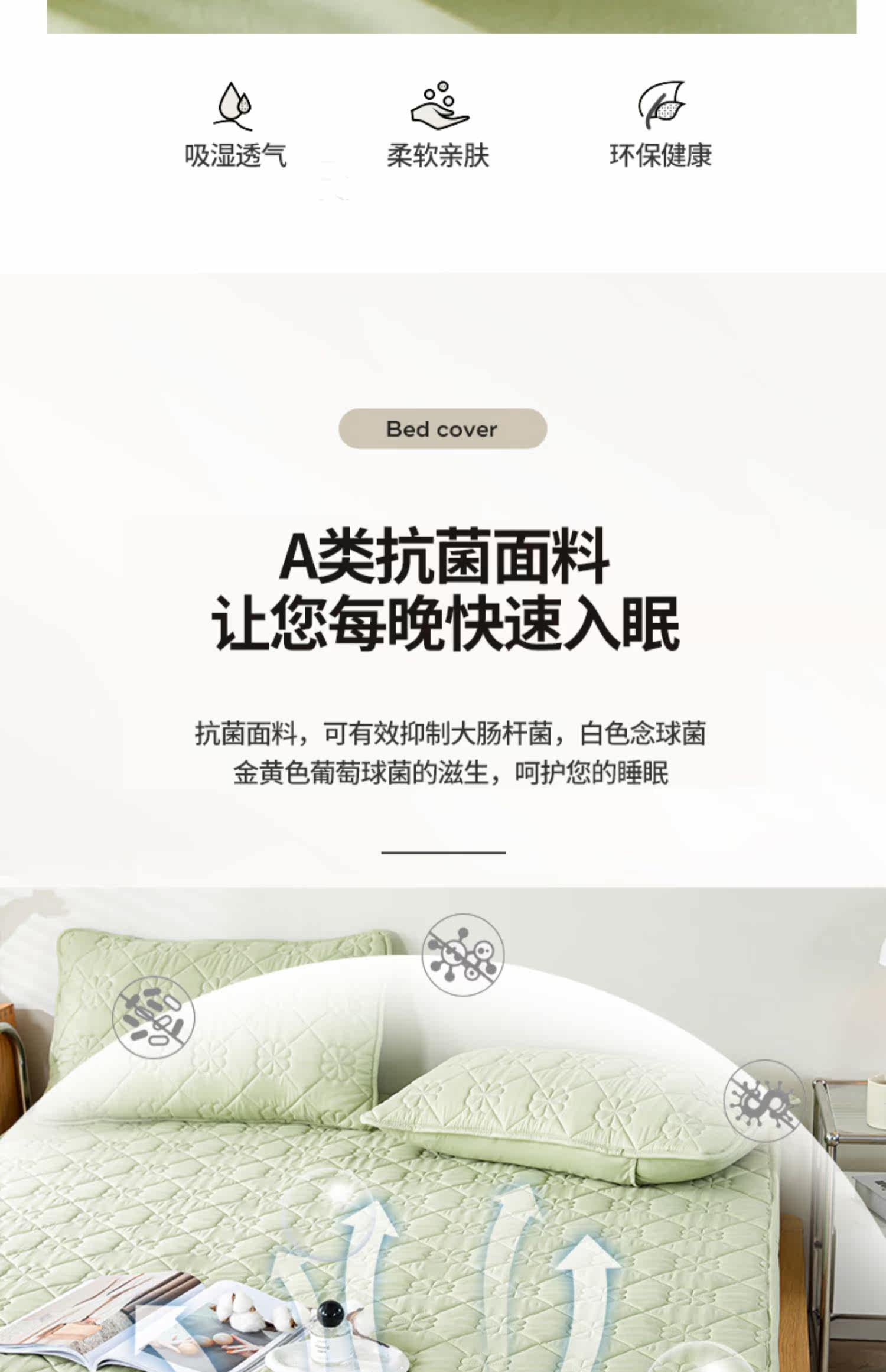 Антибактериальная стеганая простыня, покрывало, матрас, пылезащитные нескользящие накладки, увеличенная толщина
