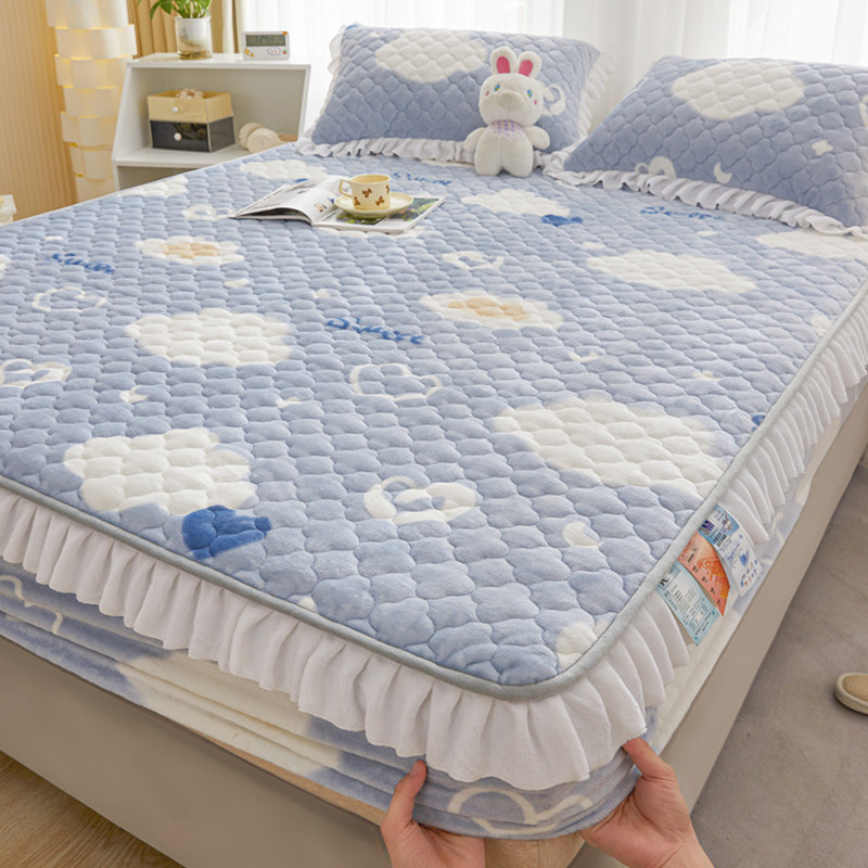Коралловая демисезонная простыня, флисовое покрывало, матрас, защитный чехол, комплект, увеличенная толщина, 3 предмета