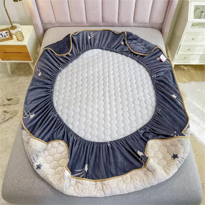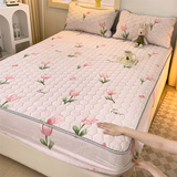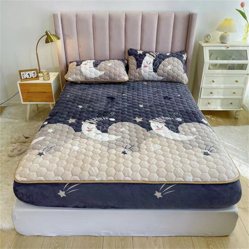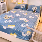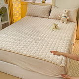 Стеганая простыня на флисовой подкладке, утепленное покрывало, матрас, коралловый защитный чехол, комплект, увеличенная толщина, 3 предмета