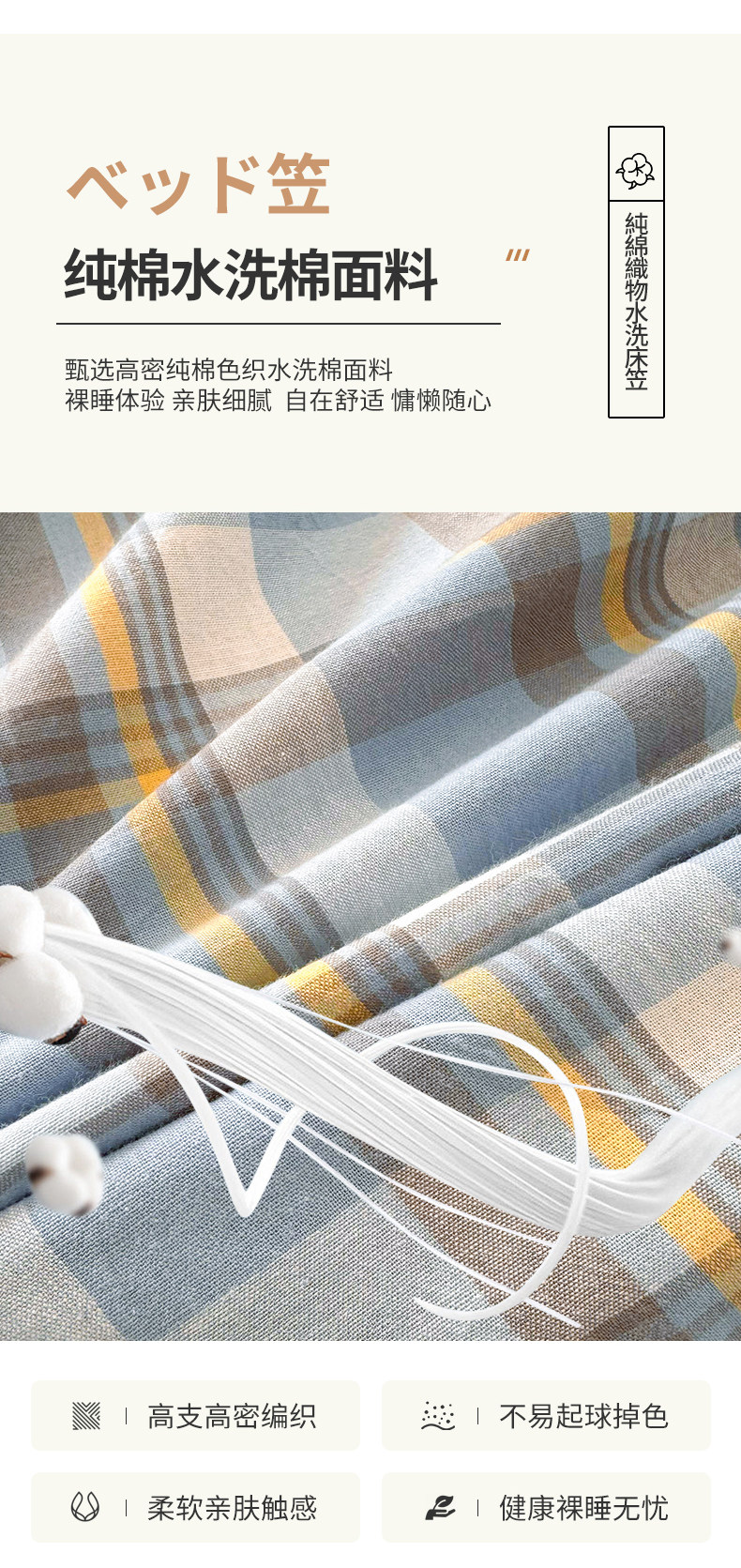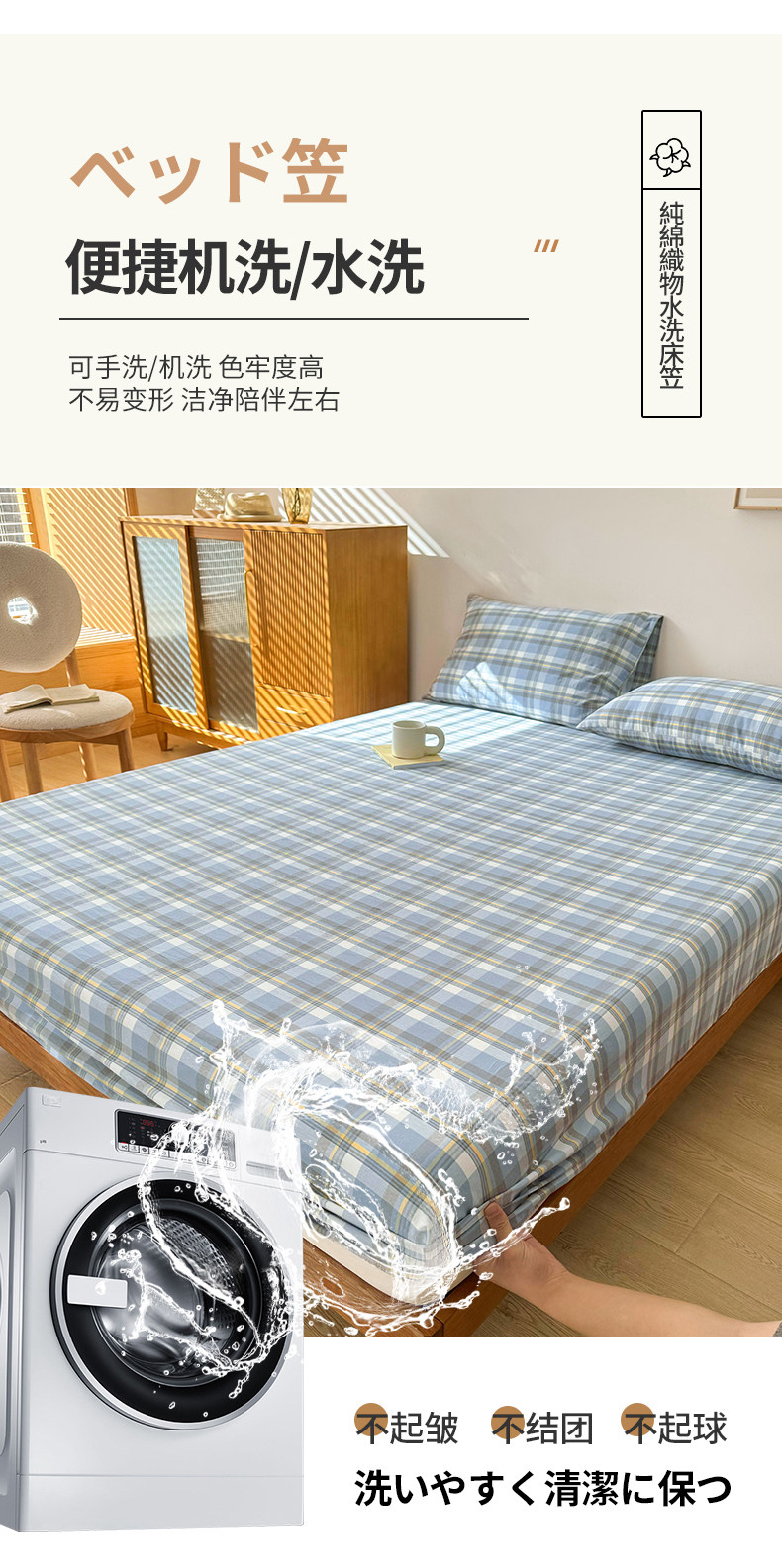 Японская хлопковая простыня, хлопковое покрывало, нескользящий матрас, накладки, комплект, 1.5м, 3 предмета