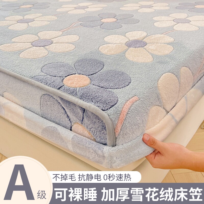Бархатная зимняя простыня, джинсы с начесом, бархатный матрас, латексные нескользящие накладки, со снежинками