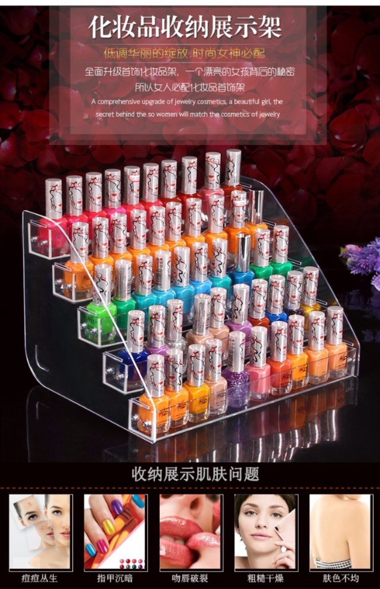 Лак для ногтей, акриловый пластиковый прозрачный стенд, косметическая система хранения для маникюра