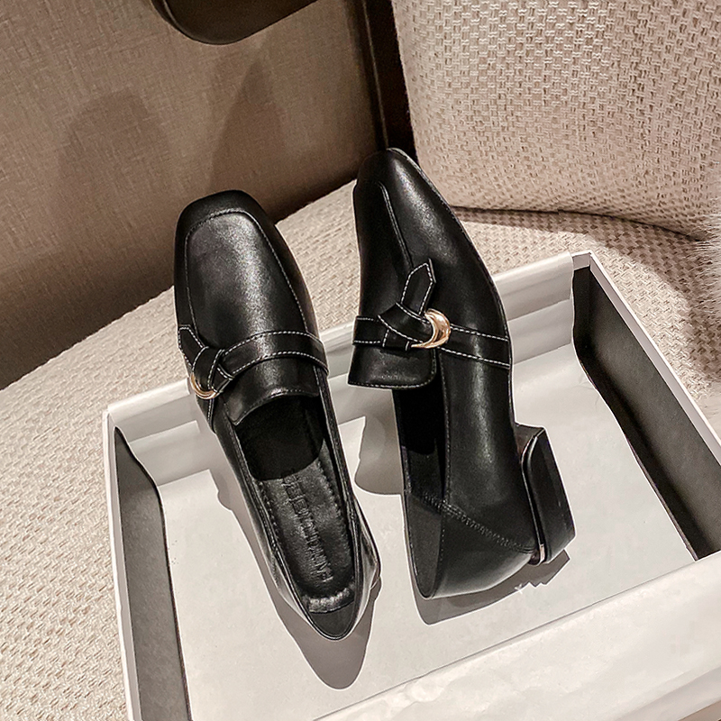 Smile Life ~ 2022 Весна и осень Новый маленький благовоний ветряной квадрат головы с низкой пяткой обувь мягкая карьера xie