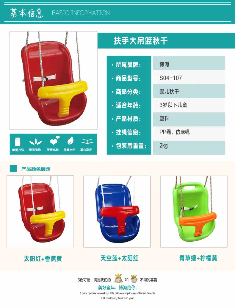 博海 Детские дорожные качели, детское кресло для детского сада, увеличенная толщина, подвесная корзина