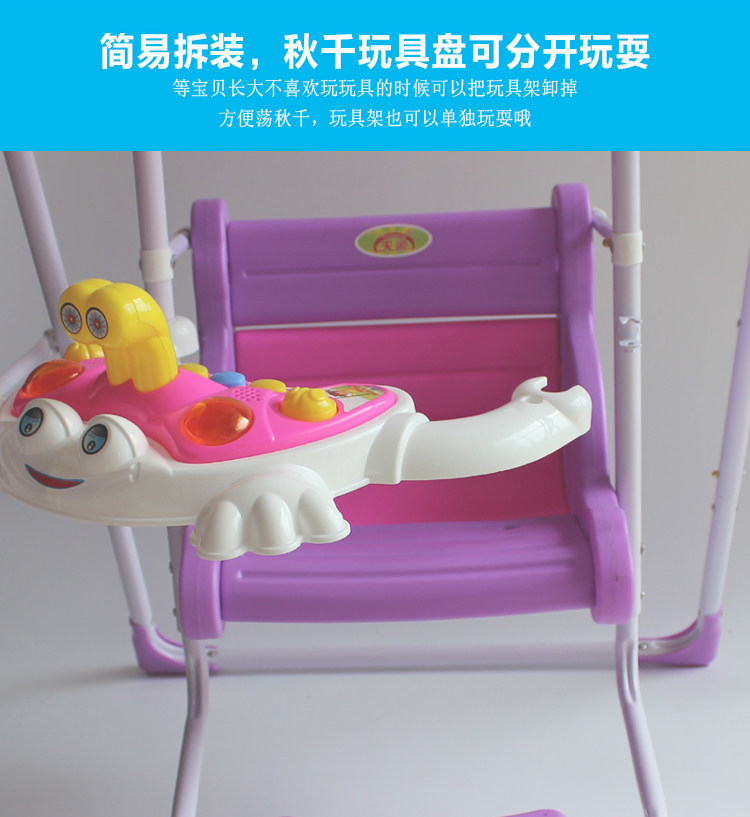 Qiu Qian использует экологически чистый пластик, без запаха, без деформации, заставляя ребенка играть более здоровым.С музыкальным диском музыкальная осень толстая, стальная труба толще и толще, разумная конструкция, конструкция твердое, сиденье оснащено ремнем безопасности, что делает ребенка более безопасной для игры.