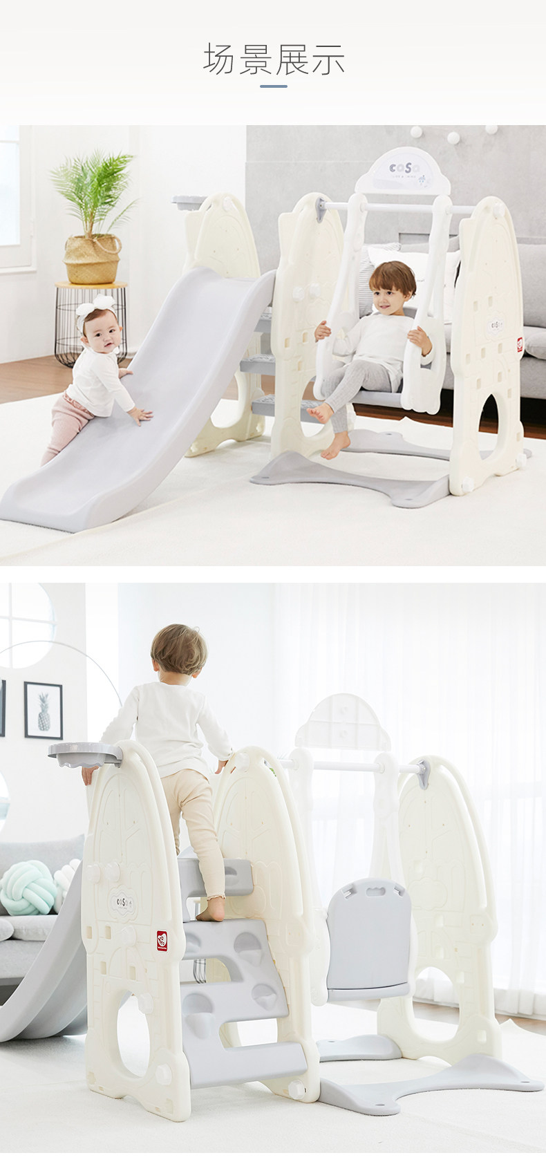 Импортная горка, высокие регулируемые качели, в корейском стиле