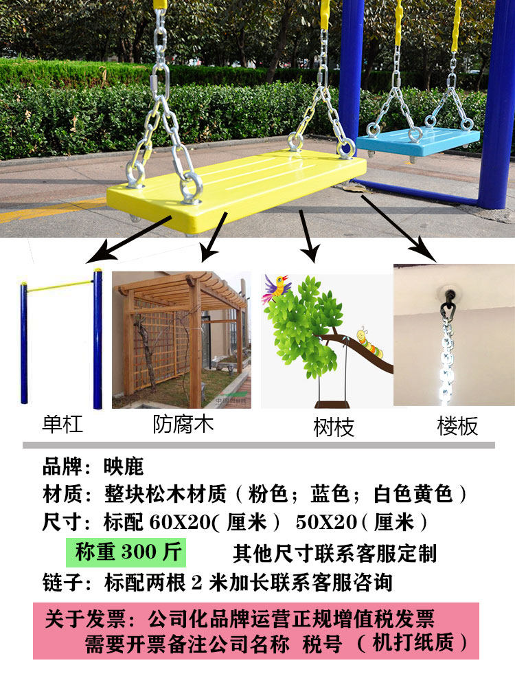 Набор аксессуаров:сиденьеПластина + 2 2-метровые цепи + ремни или пара дюбелей.,Вися на горизонтальном стержне, балках, ветвях и поле.