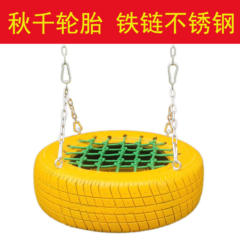 - Качели, черные шины