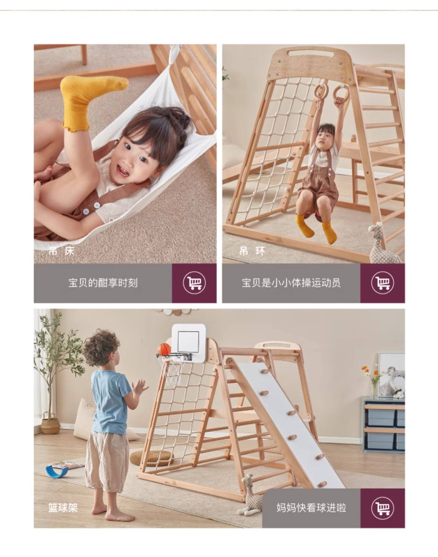 Детский спортивный комплекс, ткань, импортные качели с аксессуарами из натурального дерева, умеет карабкаться, подвесная корзина