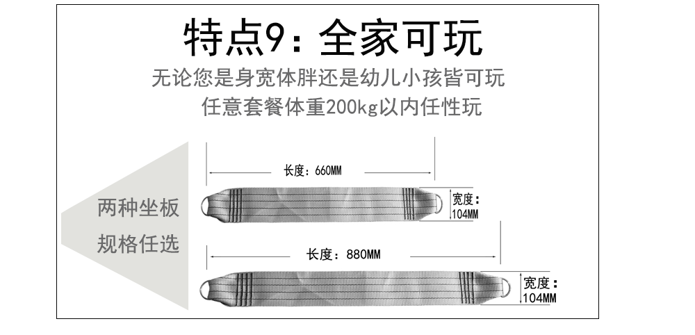 - 1,2 метра большего количества кольцевого висящего ремня+пластина сиденья+пряжка для замок