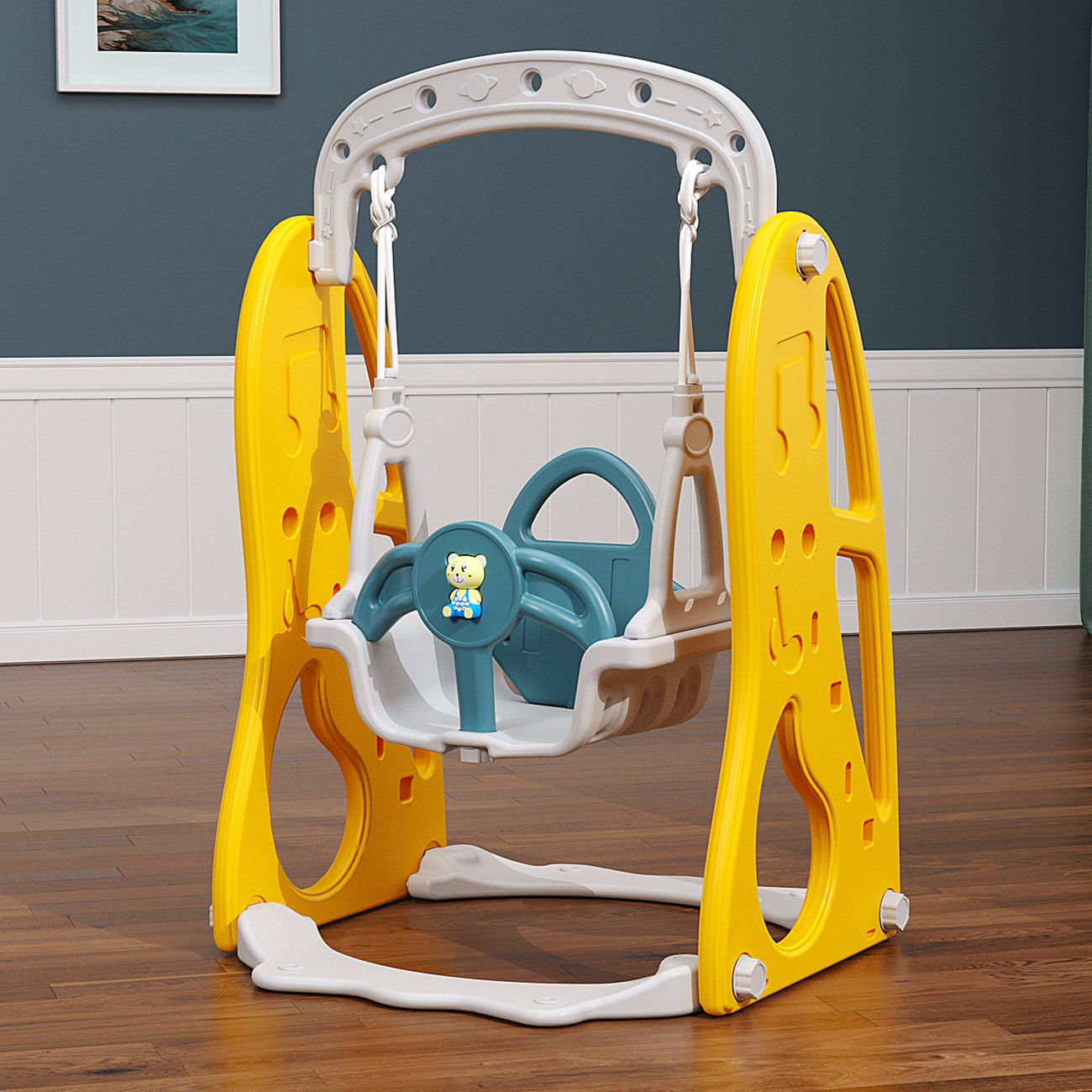 - Качели, желтый ремень безопасности