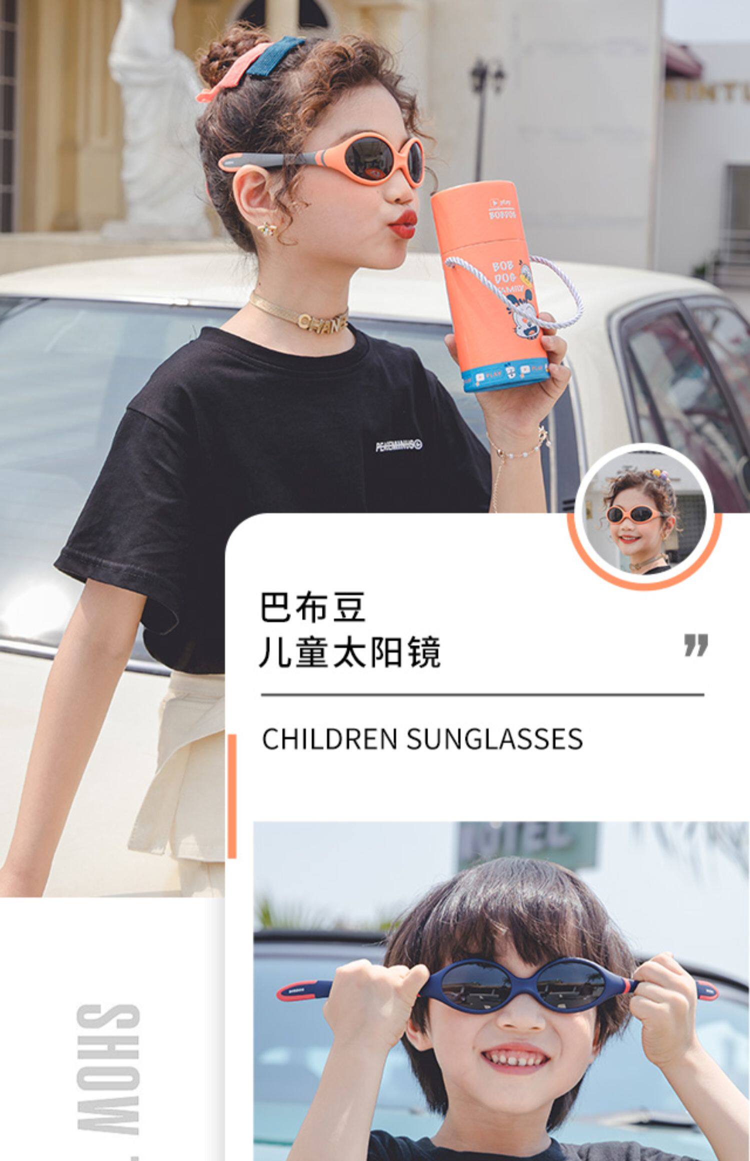 巴布豆 Детские силиконовые модные солнцезащитные очки подходит для мужчин и женщин, защита от ультрафиолета, 2 лет