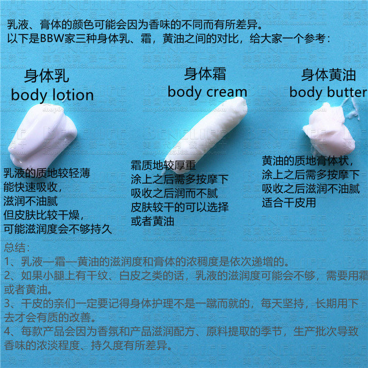 bath&Body Works имеет три серии кремов для тела, все из которых являются нереховыми формулами, просто для разницы в текстуре кожи:
