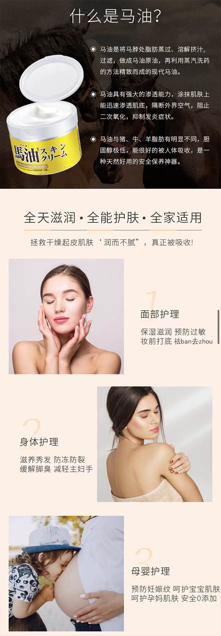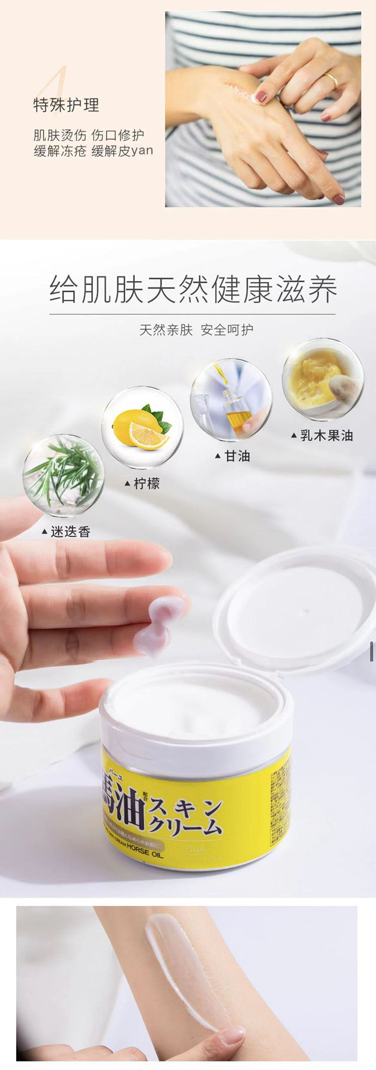 Успокаивающий универсальный японский увлажняющий питательный восстанавливающий крем для тела, содержит лошадиное масло, 220г