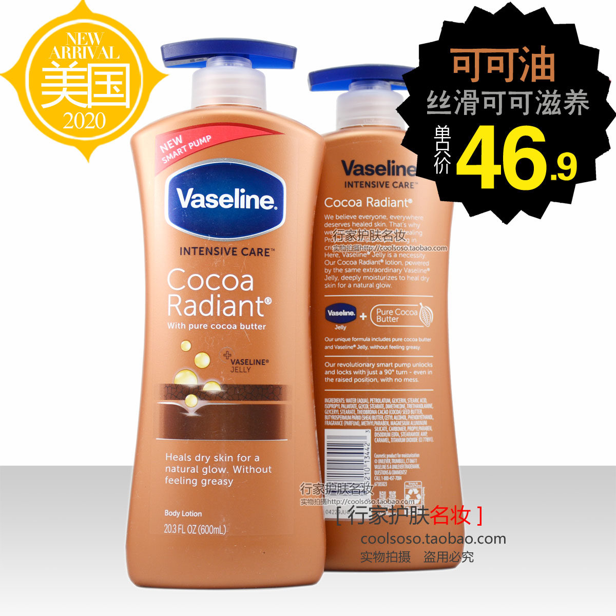 Вазелин, увлажняющее молочко для тела, крем для тела, США, 600 мл