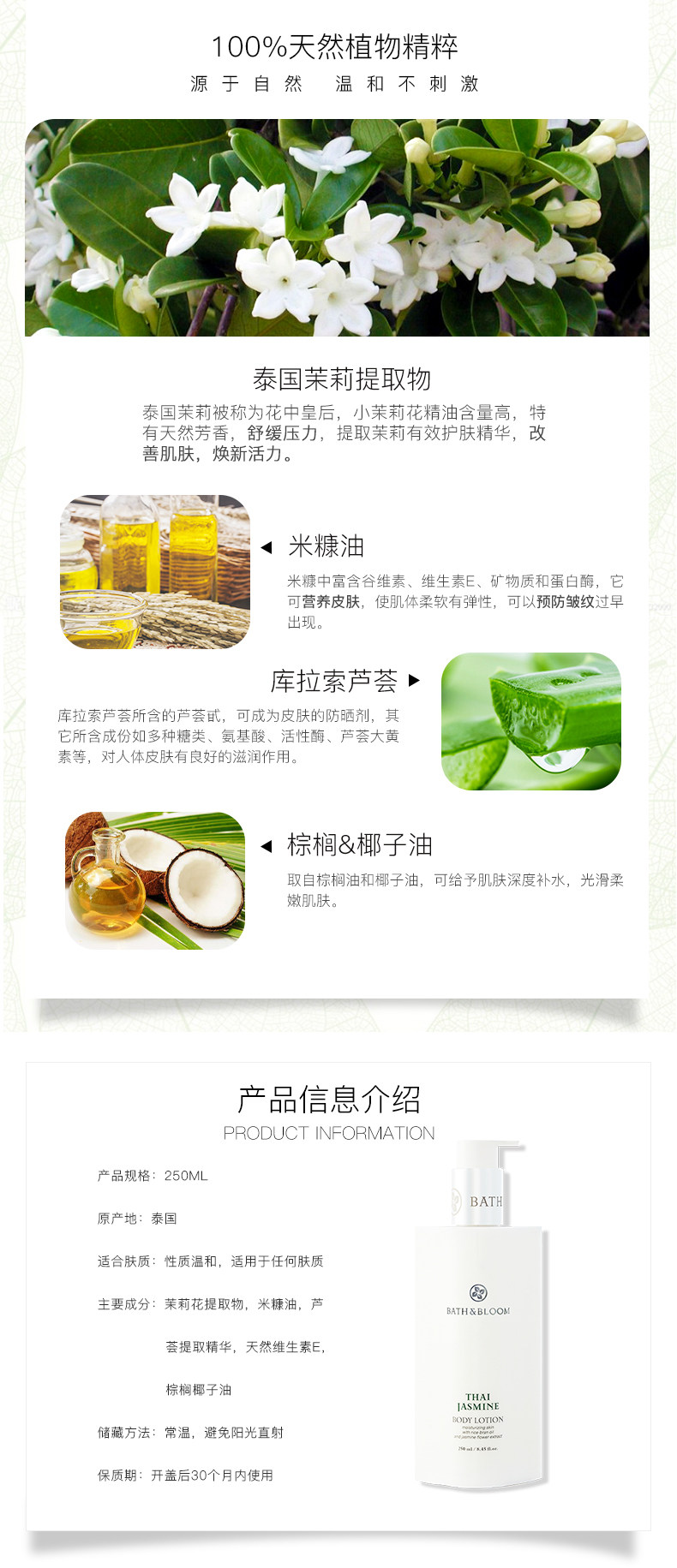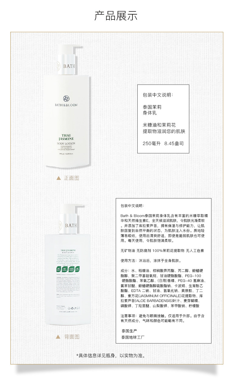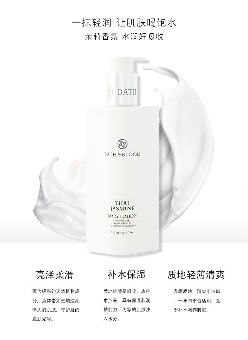 BATH&BLOOM Парфюмированный легкий и тонкий питательный успокаивающий увлажняющий крем для тела с жасмином, Таиланд, 250 мл