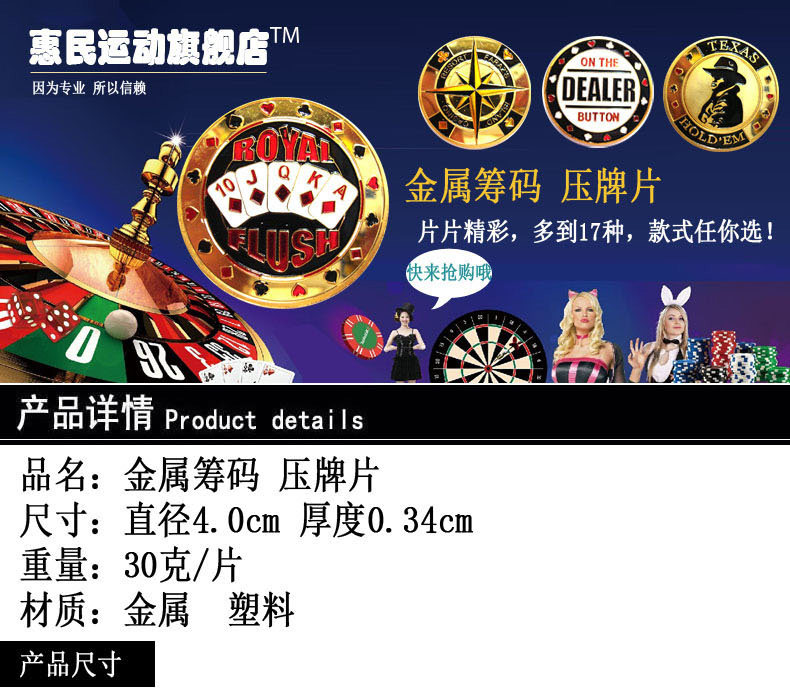 Техасские аксессуары из металлических таблеток металлических металлических чипсов имеют 17 видов цветов на выбор