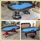 Размер техасского покерного стола, добавление водяной коробки, кодовой коробки, поддержки чашки.Цвет цвета подлокотника и цветовой рисунок скатерть и стиль столовой ноги могут быть изменены в соответствии с потребностями клиента.Цена должна только снимать аксессуары и затраты на обработку.