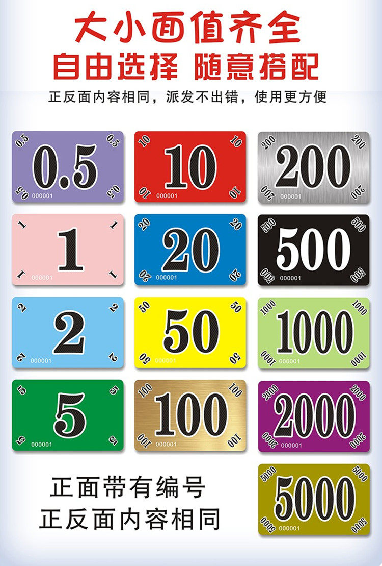 12 типов чипов могут быть выбраны на 0,5, 1,2,5,10,0,0,00,00,500 500, 2000, 5000