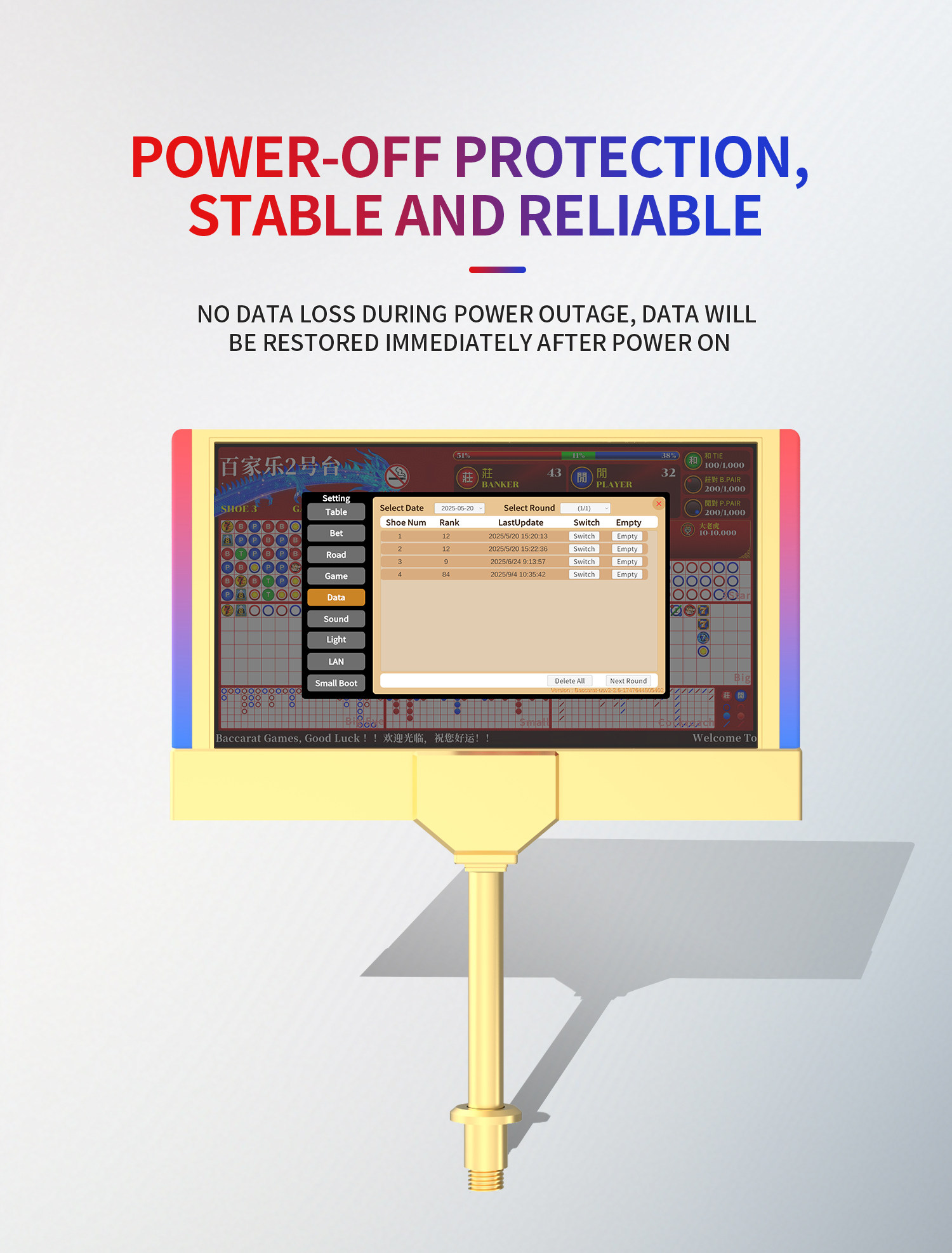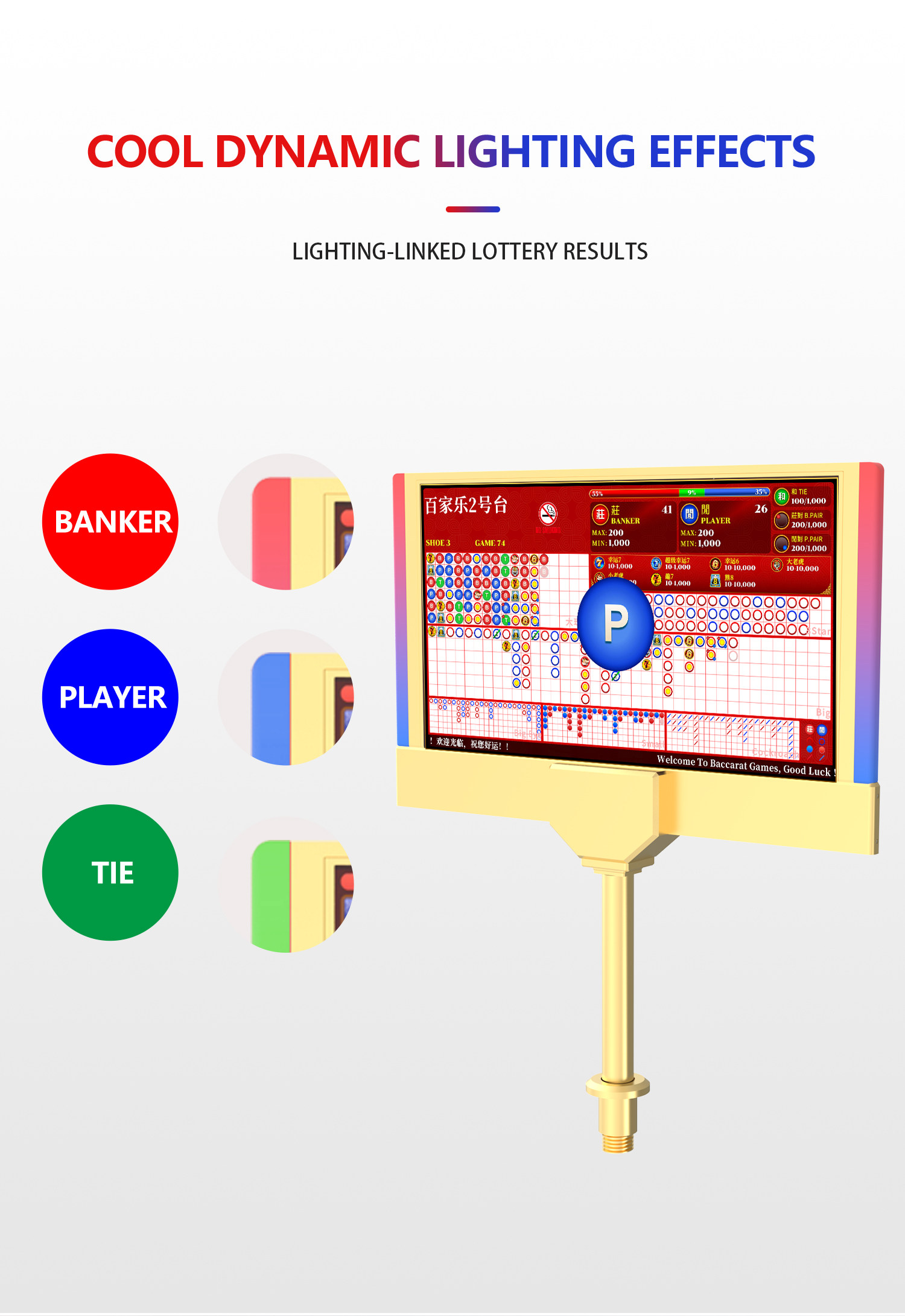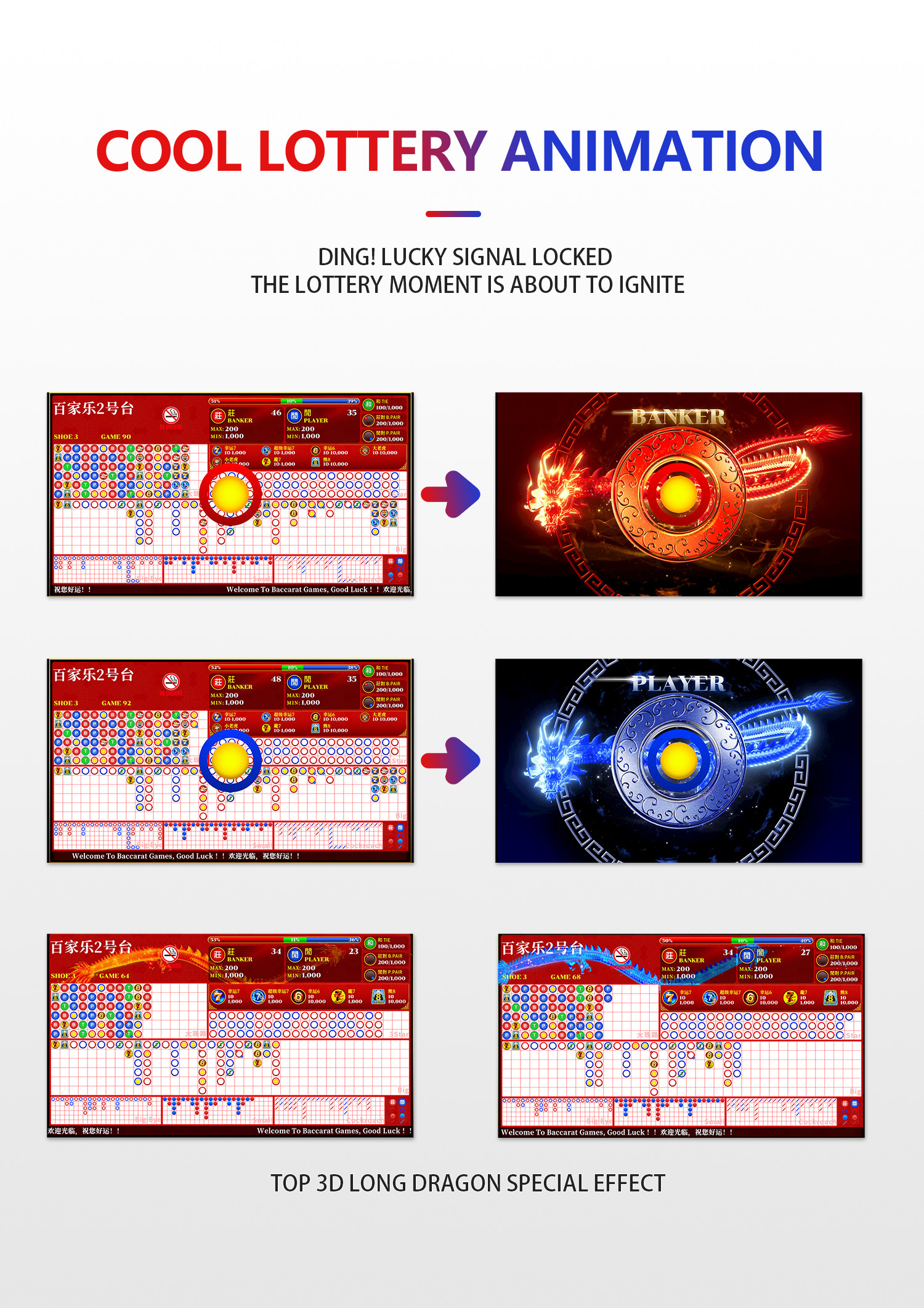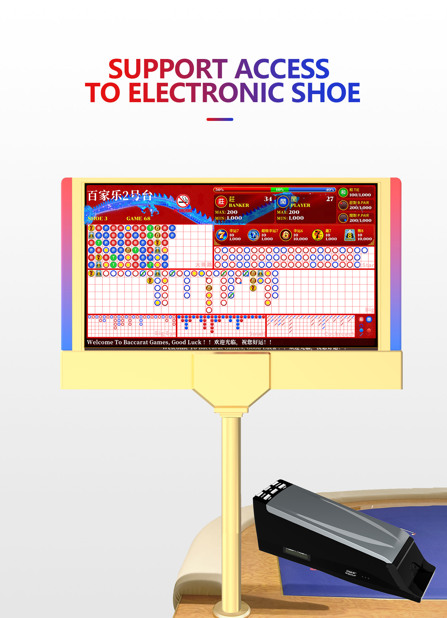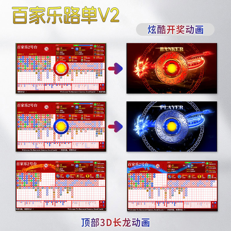 Программное обеспечение для электронного заказа на дорогу для баккара можно подключить к электронному загрузчику Lucky 6 Dragon 7 Bear 8 Super Lucky 7 с двусторонним дисплеем.