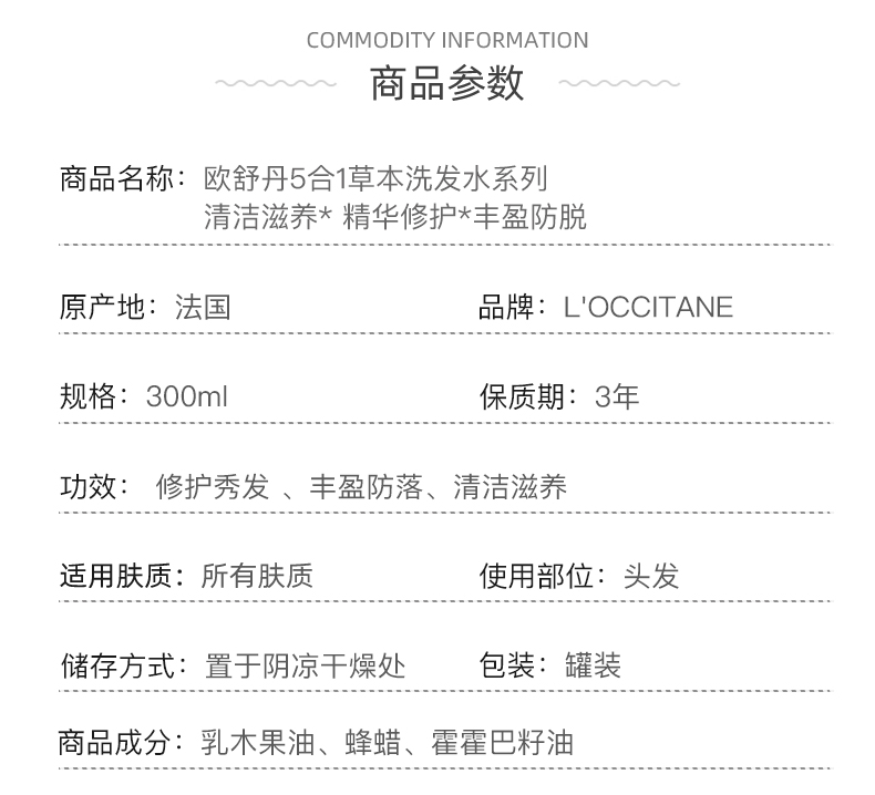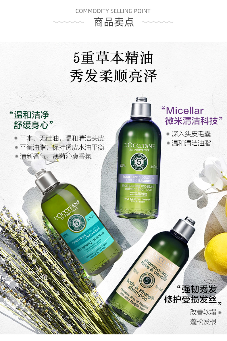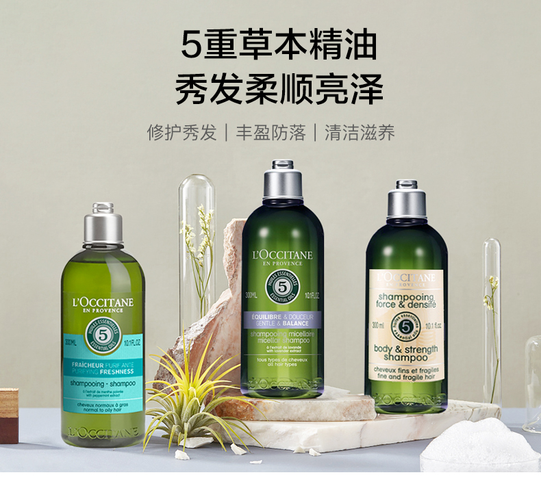 L'occitane, травяной шампунь, 300 мл, придает объем, контроль жирного блеска, удаление перхоти