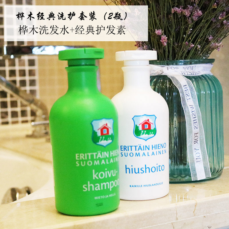 Финский импортный магазин Erittain Birch Set Set сильный корень, сильные волосы, мягкие, меньше волос, 2 бутылки