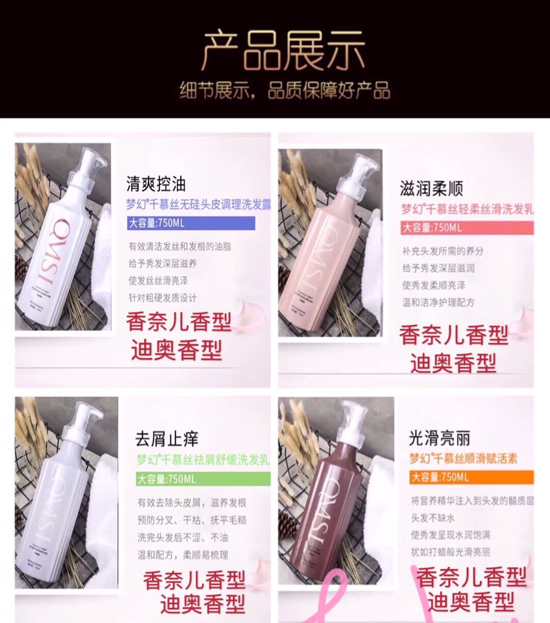 Шампунь, кондиционер со стойким ароматом, удаление перхоти, против зуда, контроль жирного блеска, придает объем, долговременный эффект