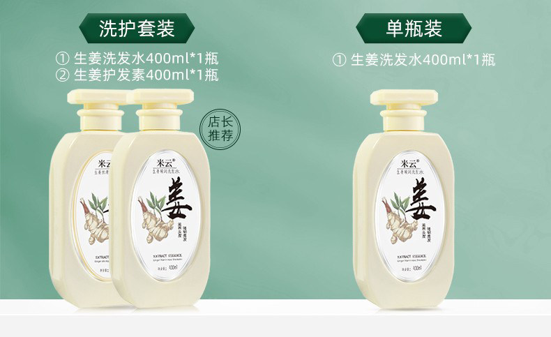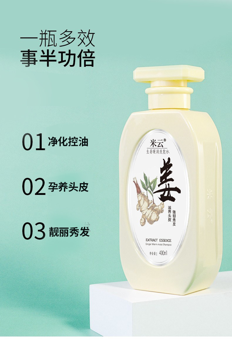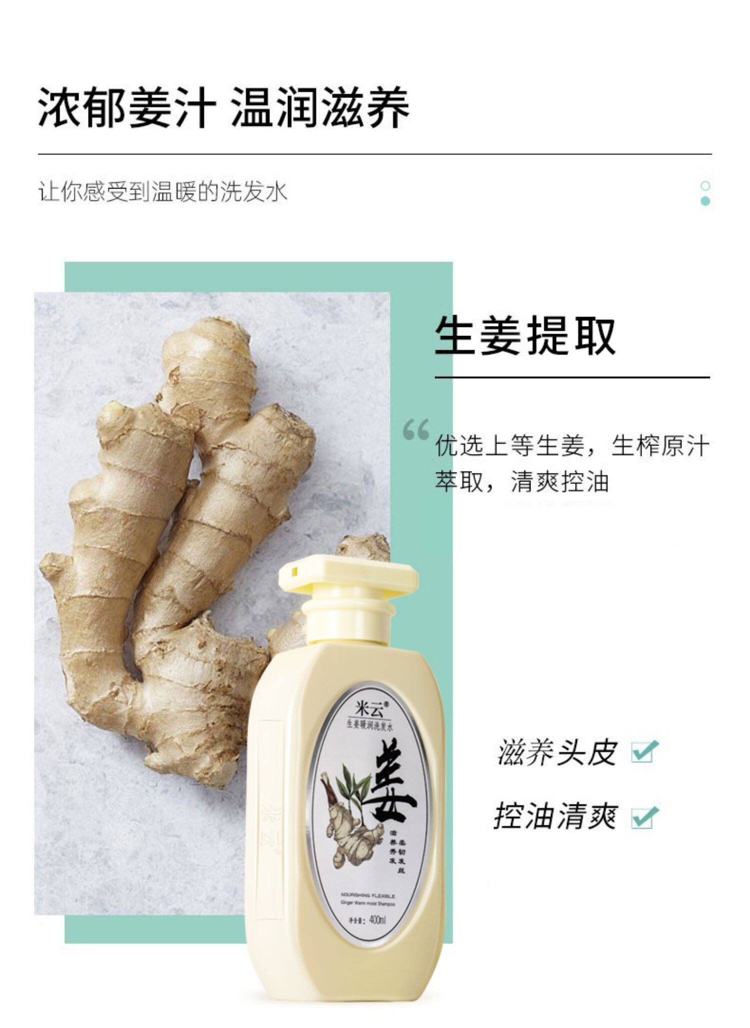 米云 Шампунь, комплект с имбирем, удаление перхоти, контроль жирного блеска, придает объем